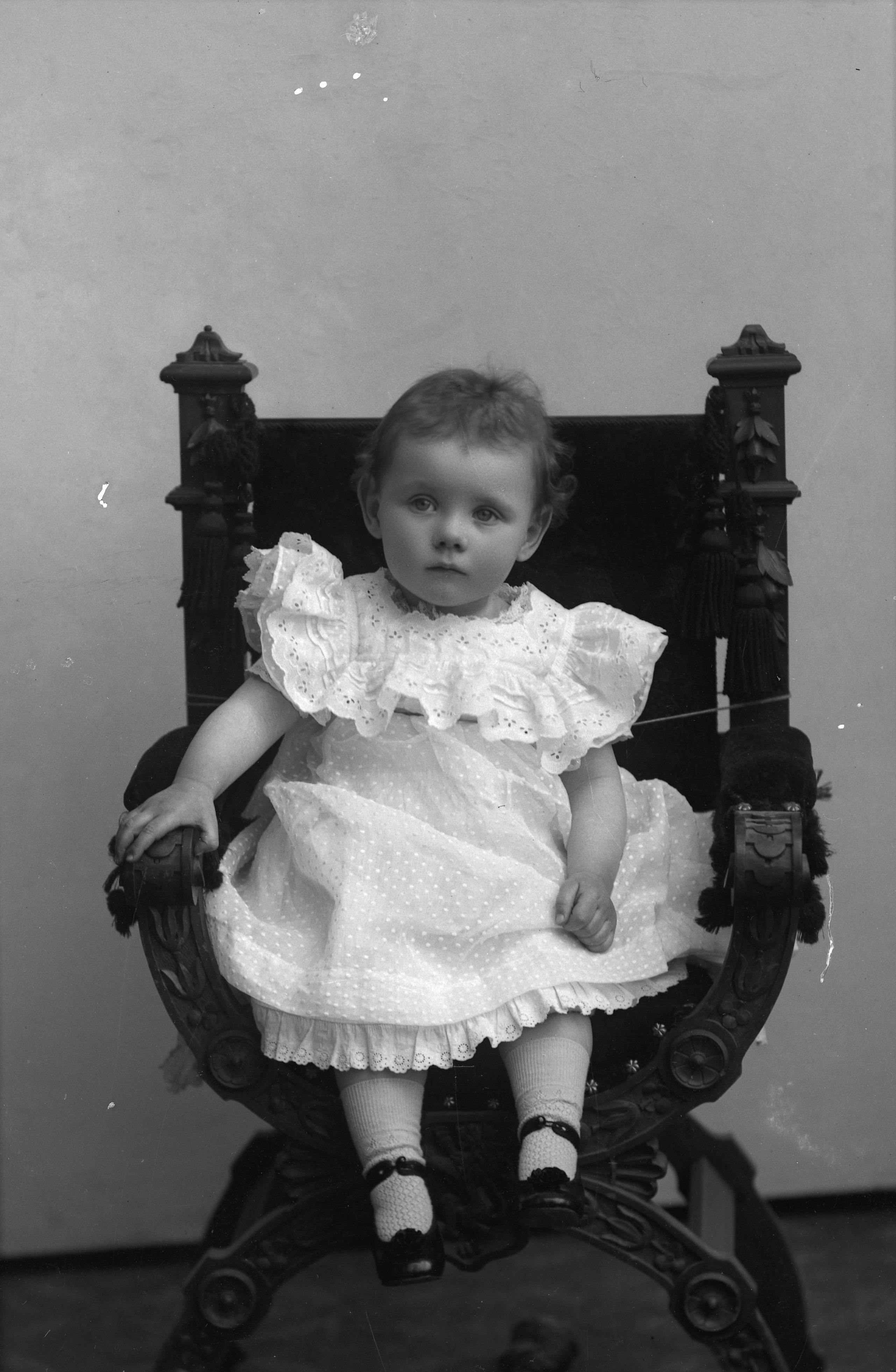Beskrivning: Porträtt i helfigur av friherrinnan Lejonhufvuds dotter, sittande i stol.