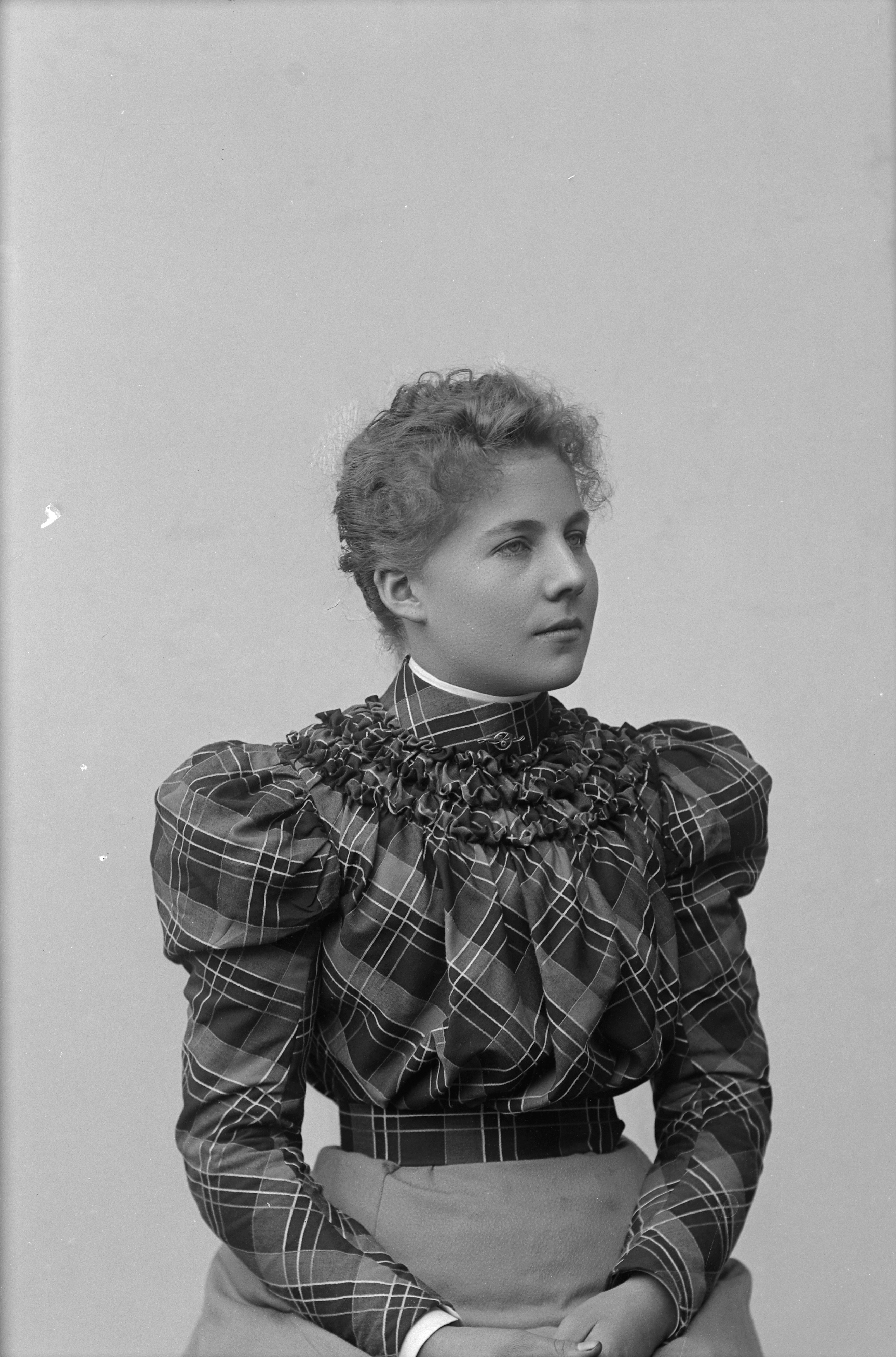 Beskrivning: Porträtt i halvfigur av Ellen Påhlsson.