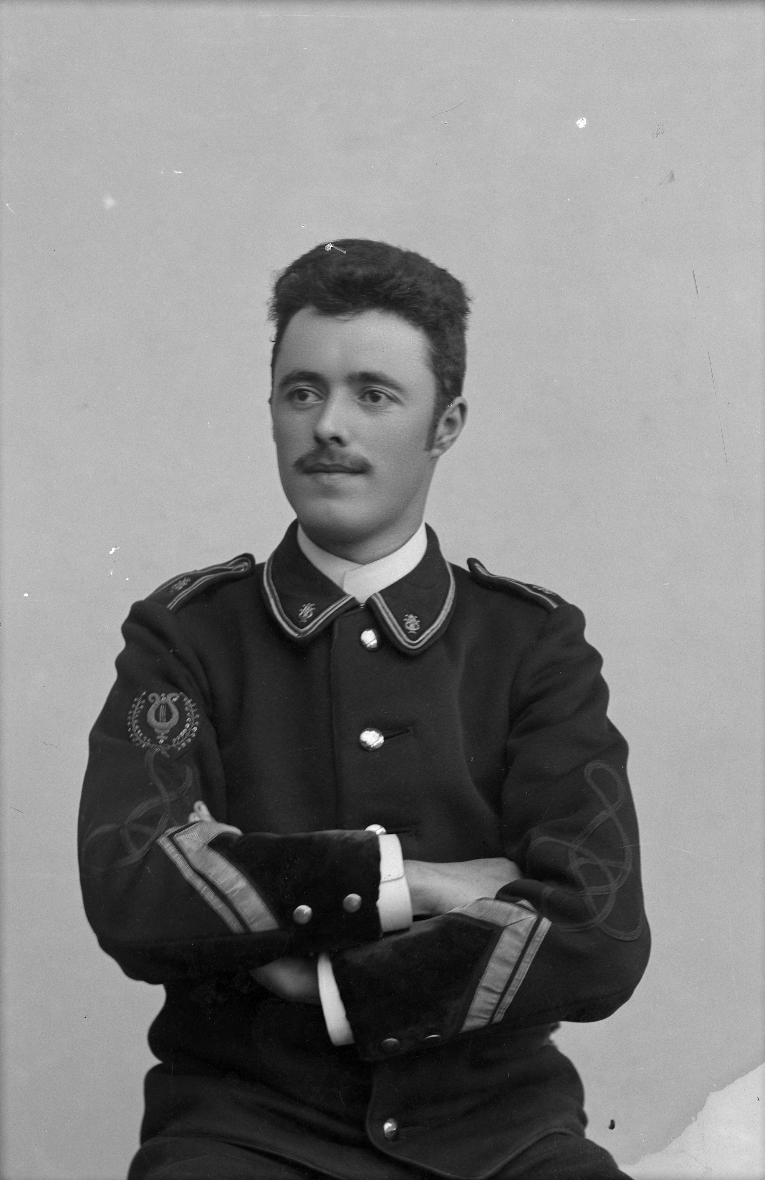 Porträtt i halvfigur av Alfredo Brückner, iklädd yrkesuniform av okänt slag.