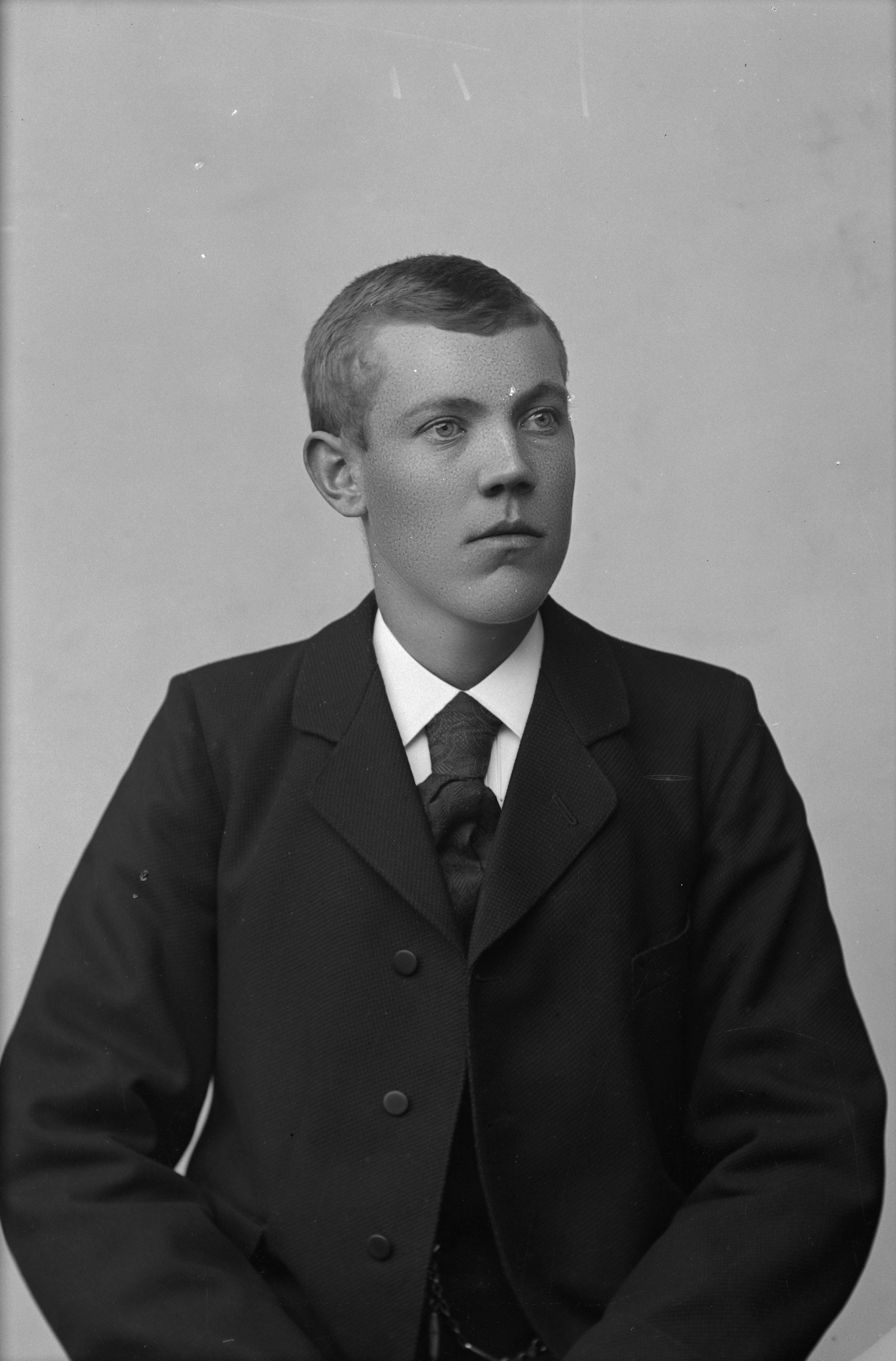 Beskrivning: Porträtt i halvfigur av August Bergmark.