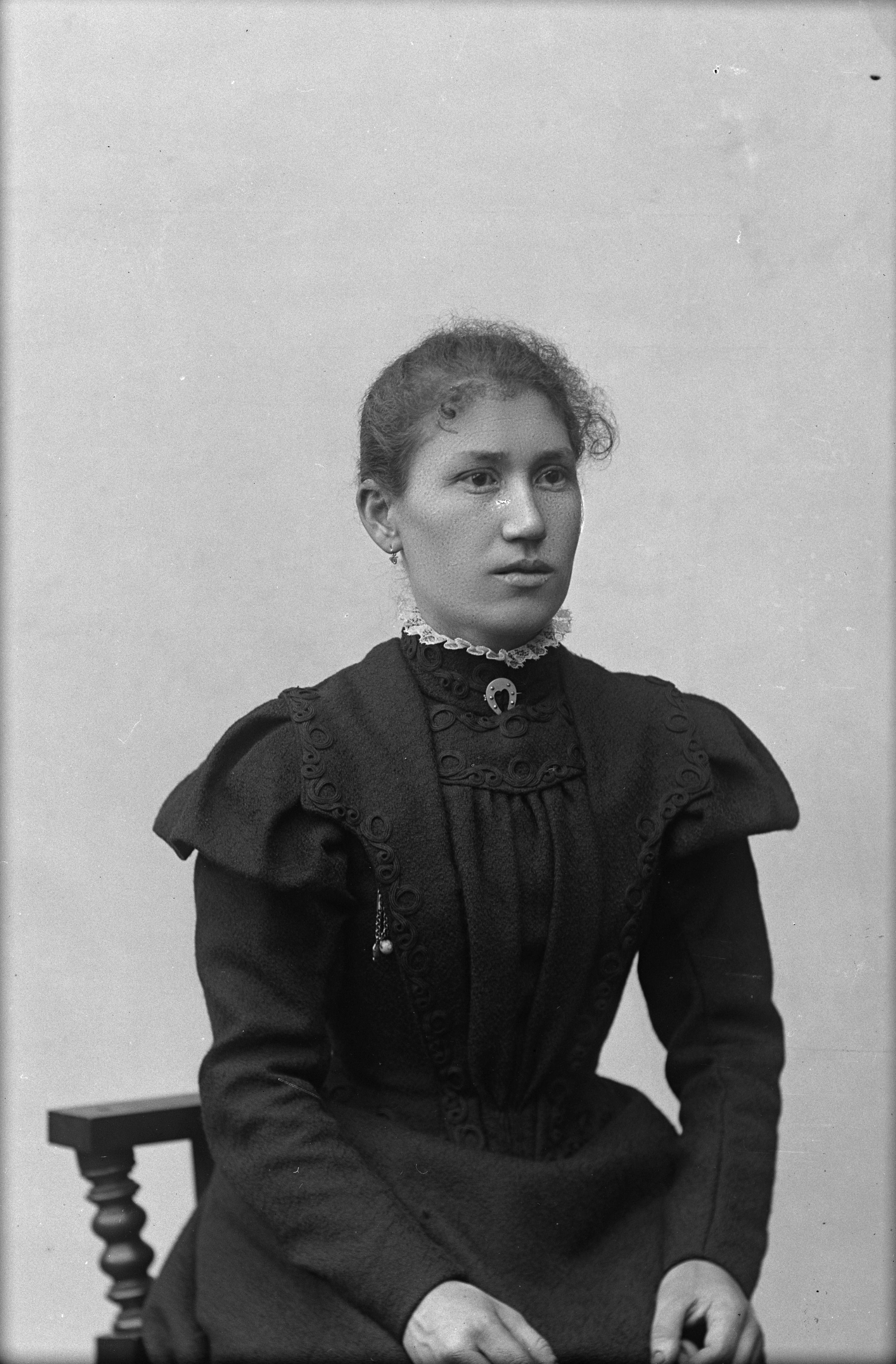 Beskrivning: Porträtt i halvfigur av Ingrid Christensson.