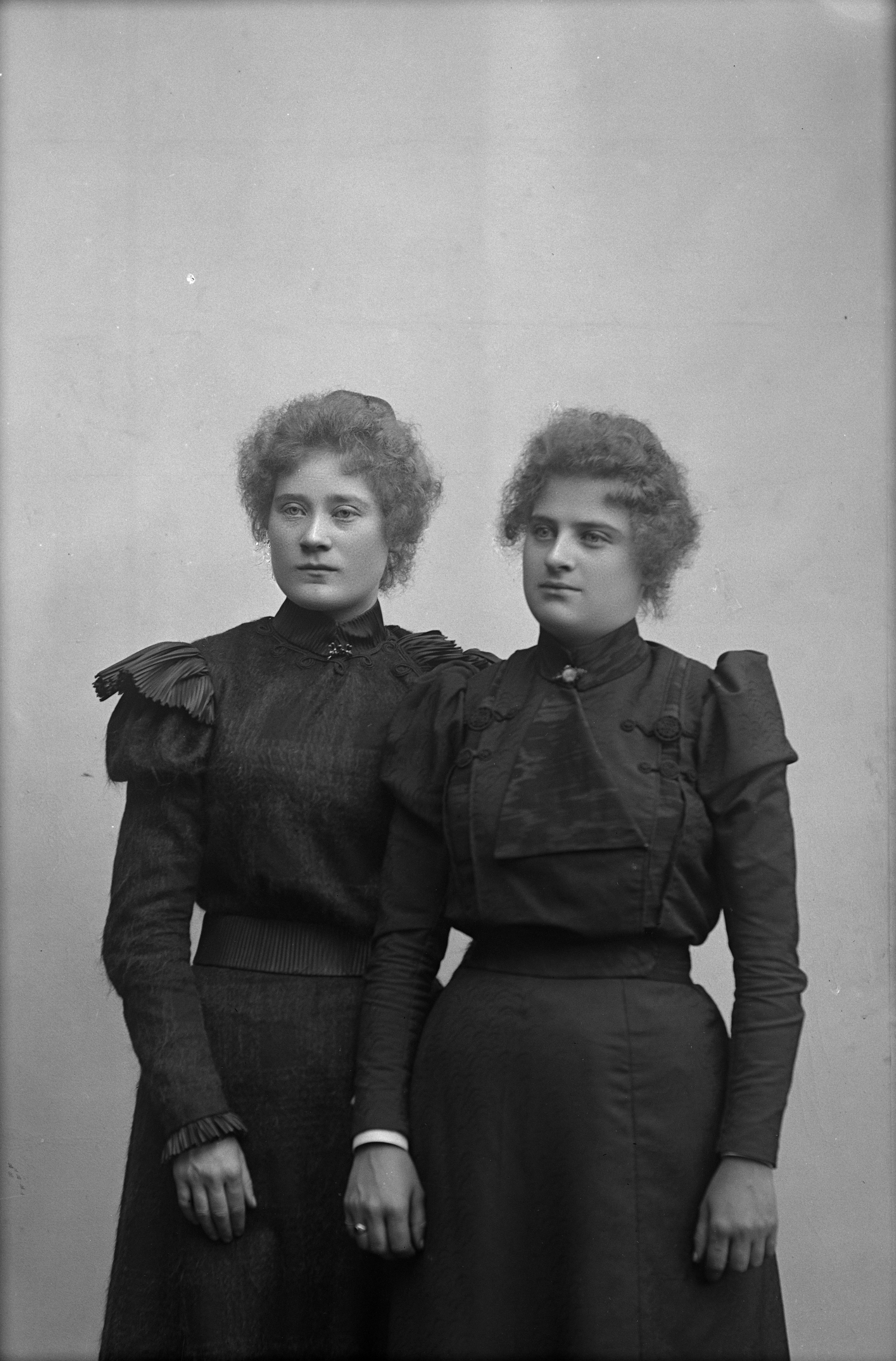 Beskrivning: Porträtt helfigur av Augusta Ljungquist med okänd kvinna.