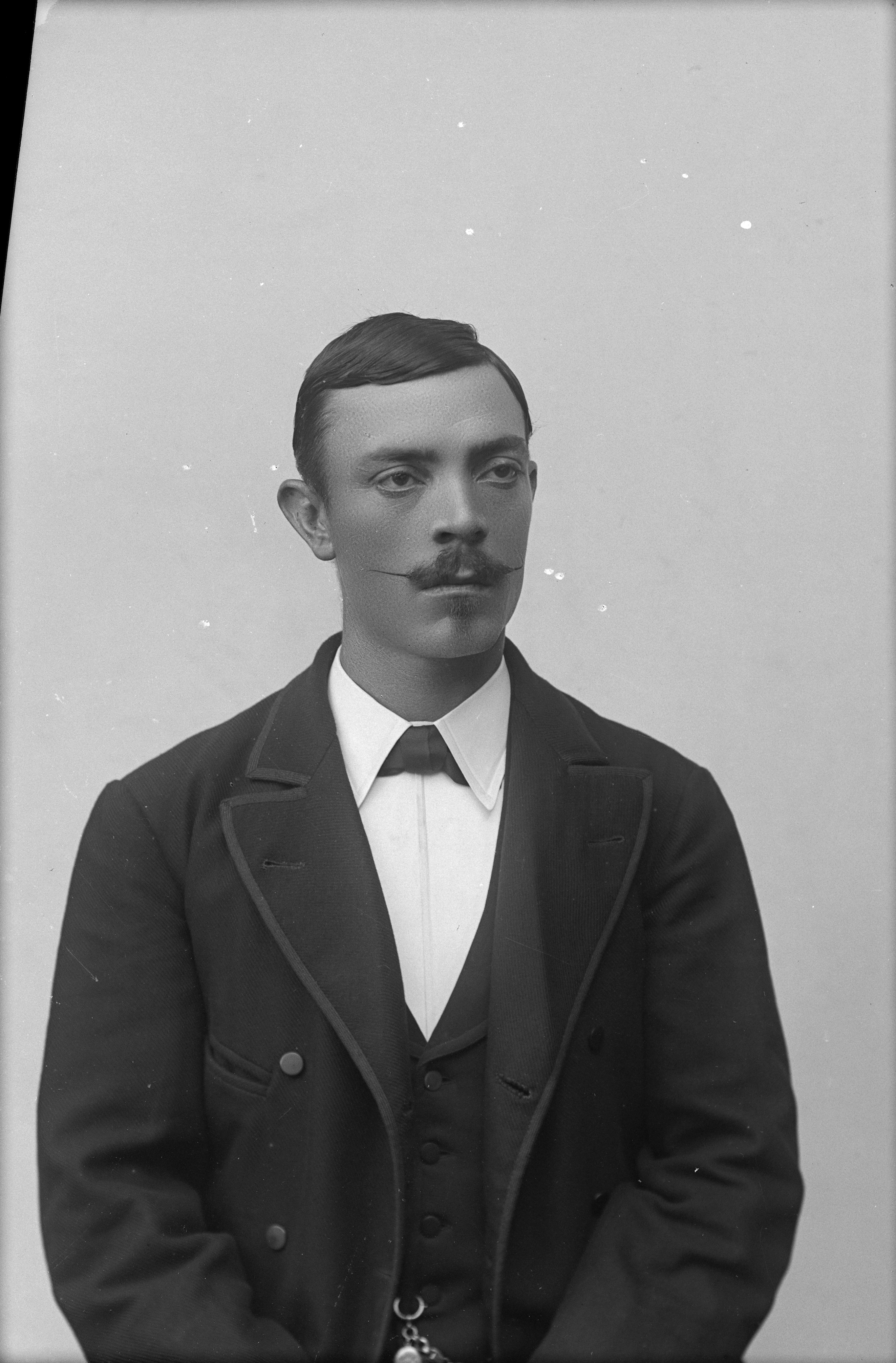 Beskrivning: Porträtt halvfigur av styrman J. Larsson.