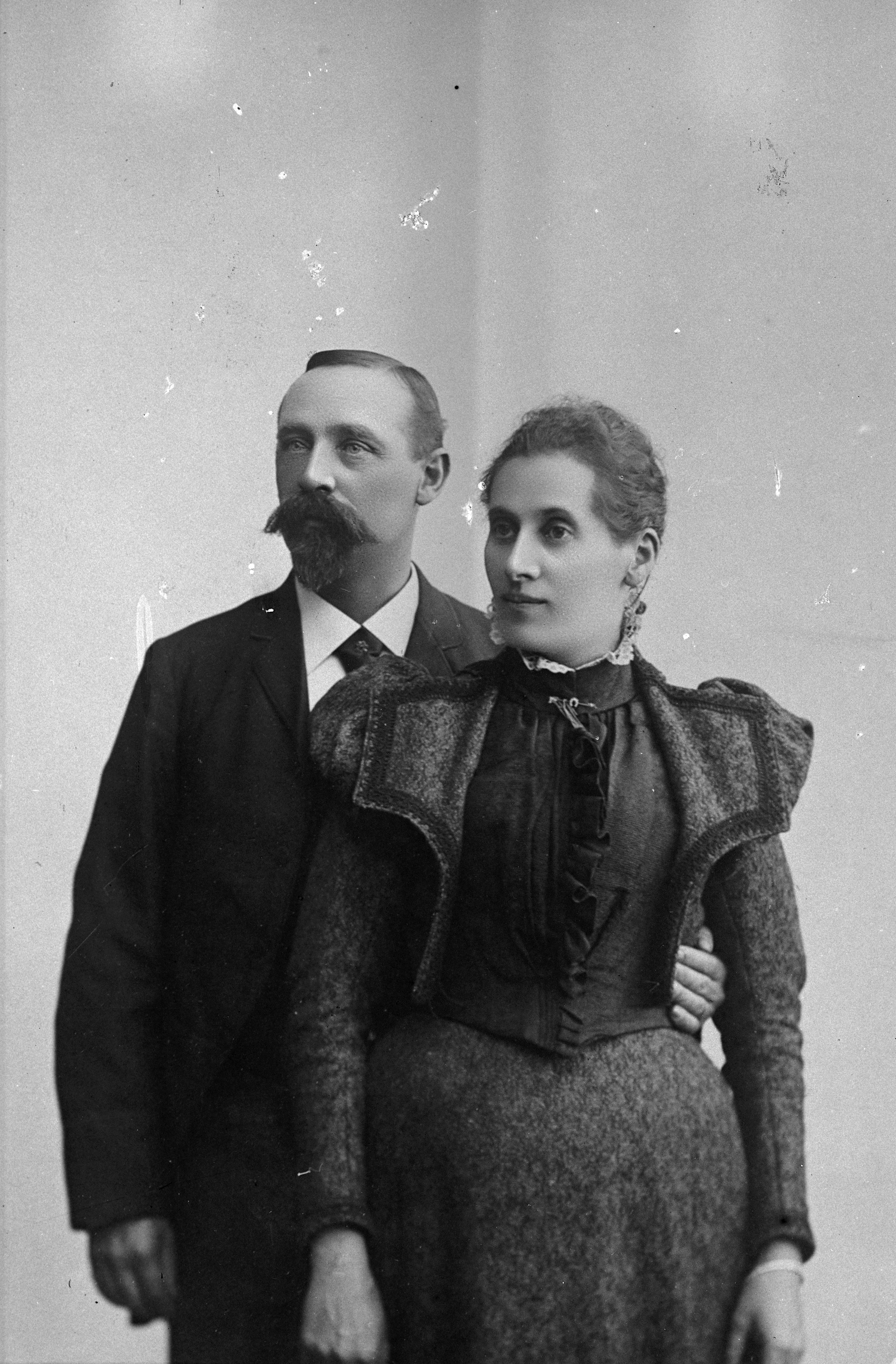Beskrivning: Porträtt i helfigur av herr Hammargren med fru.