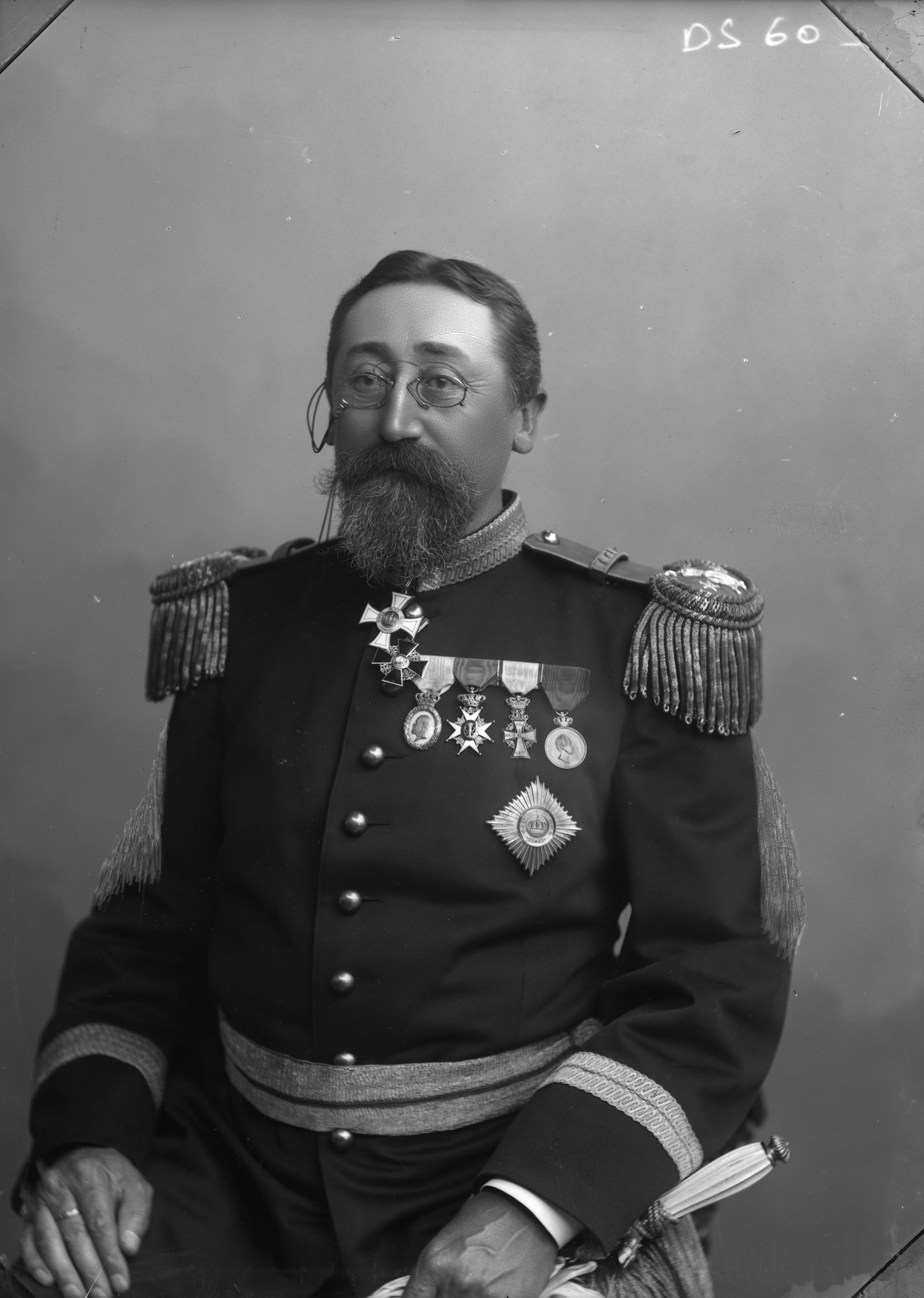 Beskrivning: Porträtt av äldre militär.