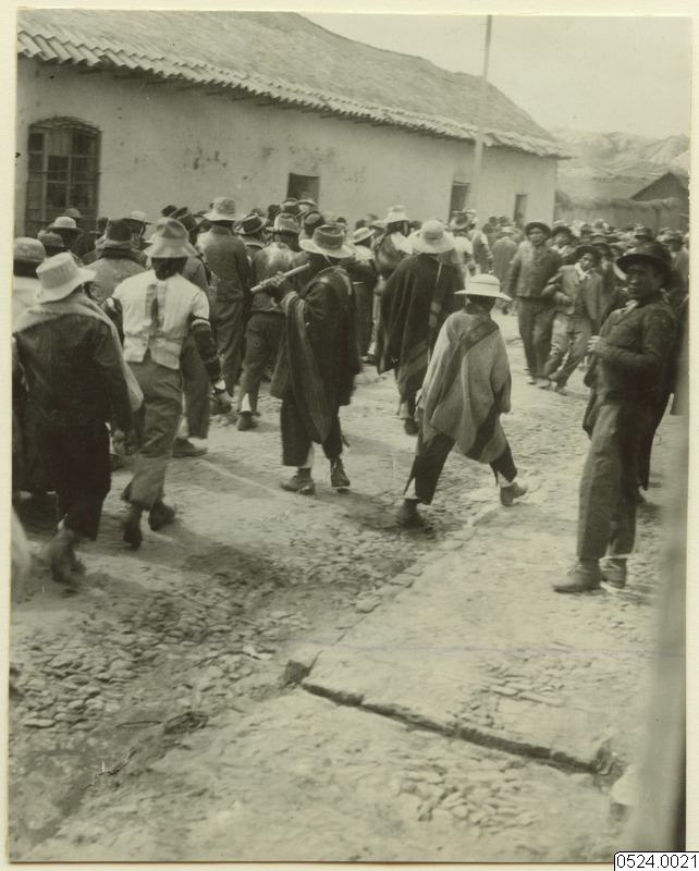 Från första dagens karnevalsfest, då spriten på en del arbetare redan gjort synbar verkan. Man må observera de i trekant nedtill uppklippta byxorna, där de än så länge vita kalsongerna för all världens kungöra, att dess bärare vet, hur en verklig gentleman skall vara klädd invärtes. Den ivrigt flöjtblåsande mannen har tappat bort sig och förlorat kontakten med musikkårens övriga medlemmar, men är tydligen lika glad för det.
