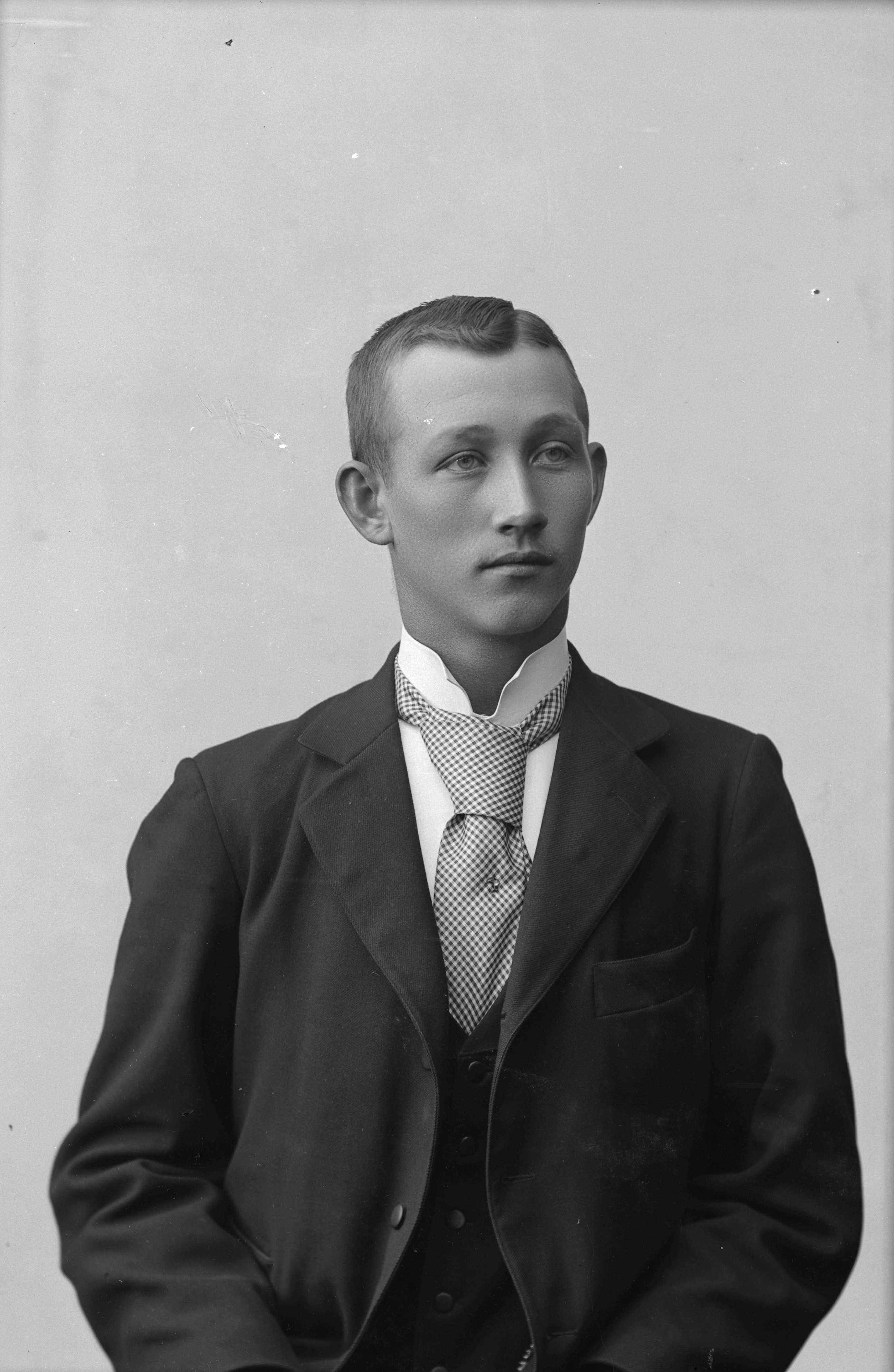 Beskrivning: Porträtt i halvfigur av Emil Håkansson.