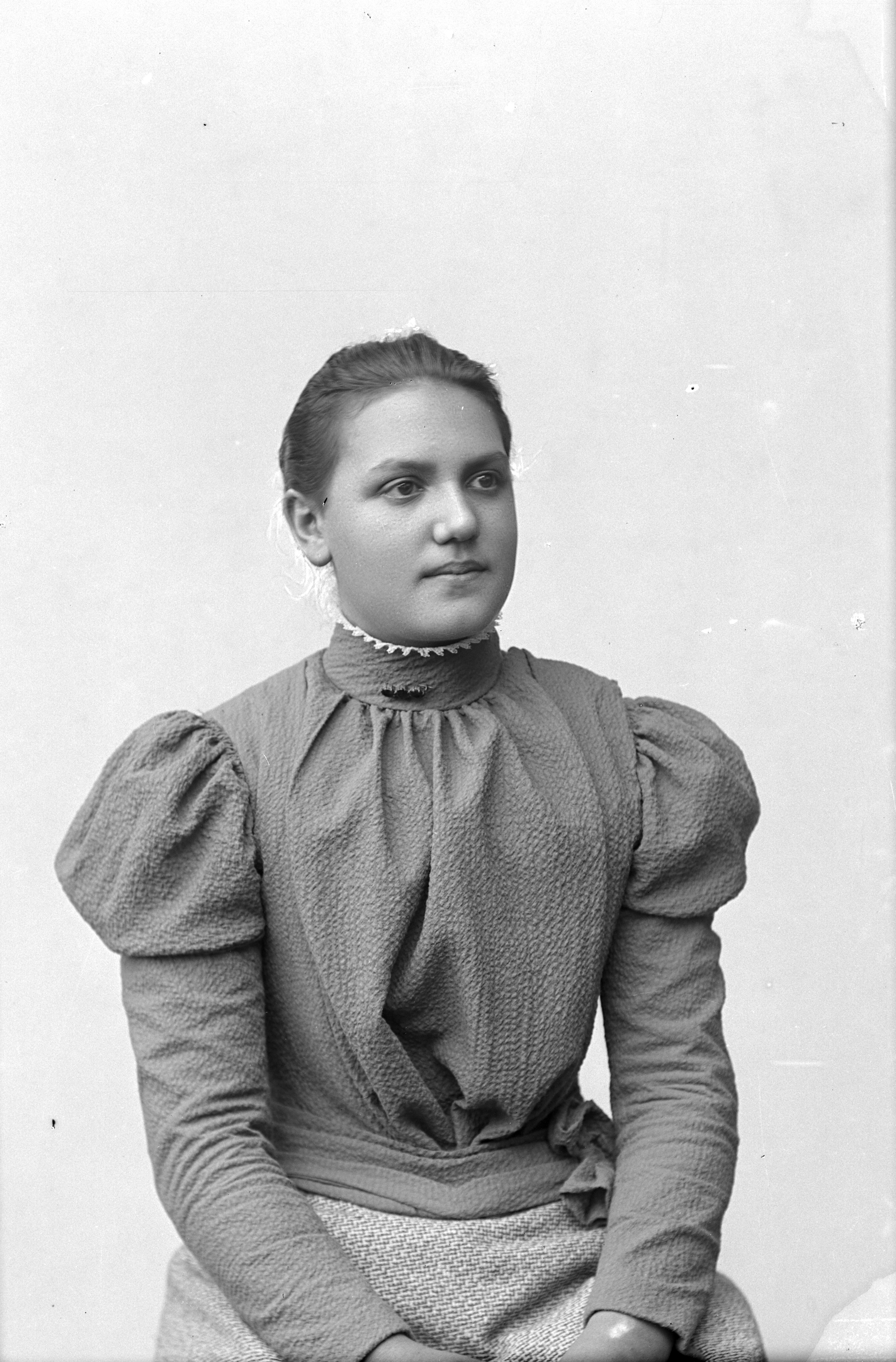 Beskrivning: Porträtt i halvfigur av Anna Forslund.