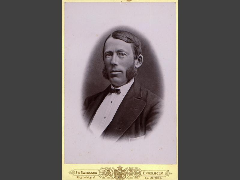Beskrivning: Visitkortsfotografi. Porträtt av grosshandlare Carlsson.