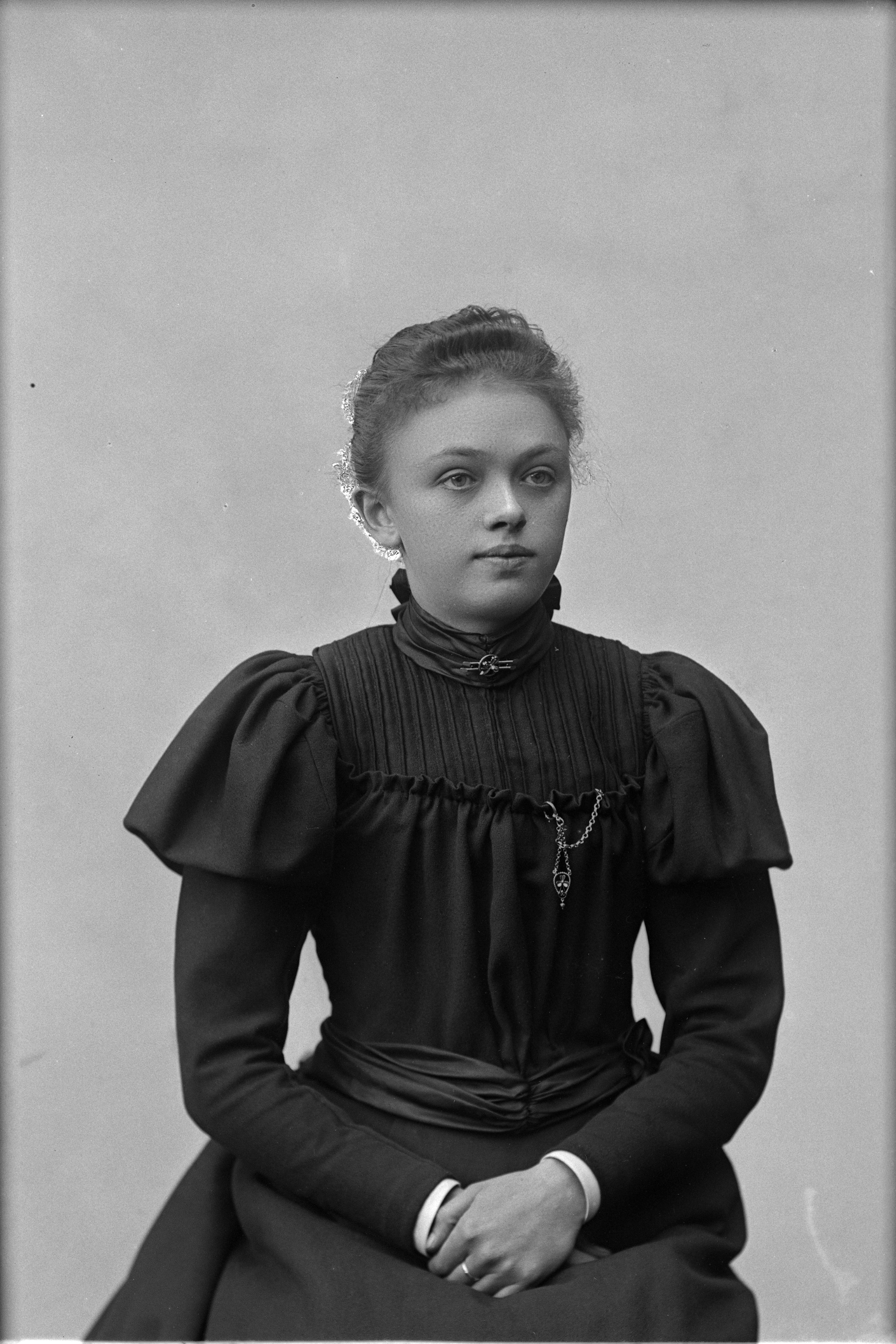 Beskrivning: Porträtt i halvfigur av Carolina Larsson.