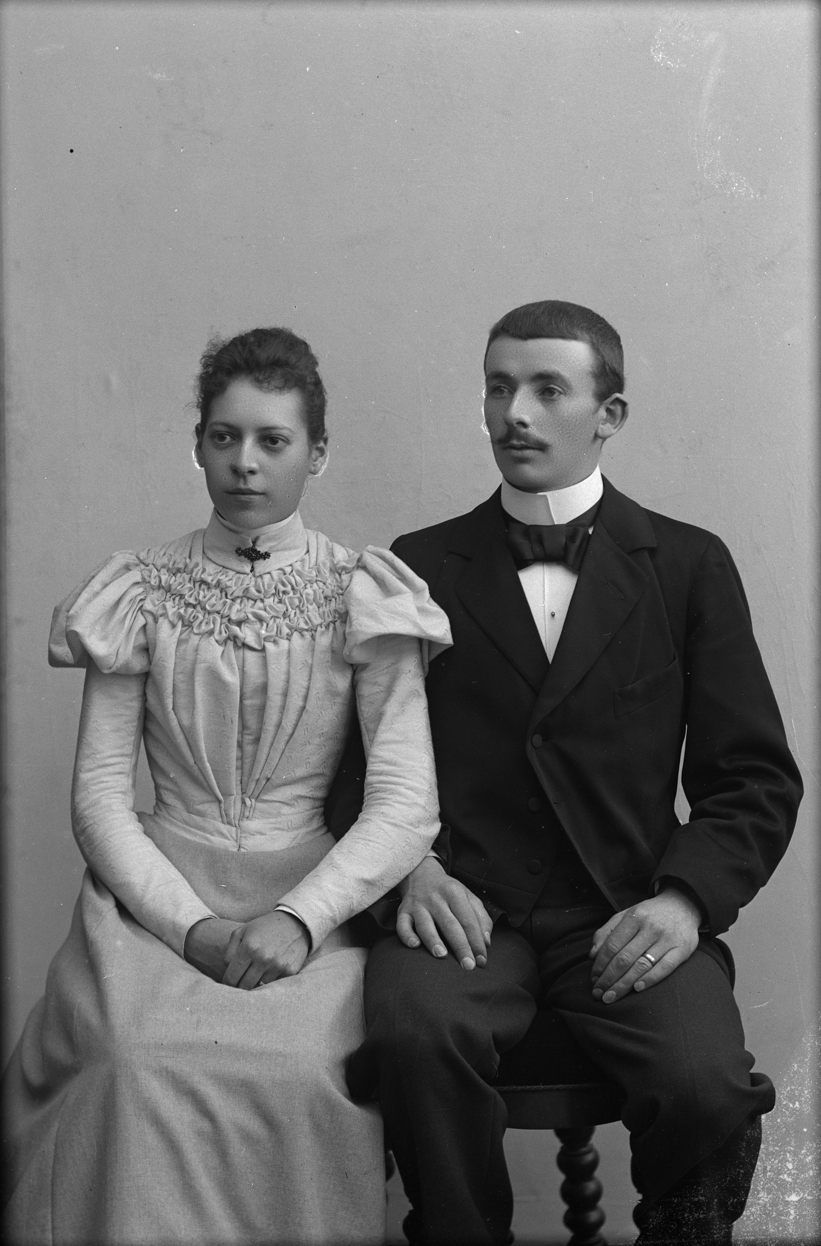 Beskrivning: Porträtt i helfigur av F. Vittgren med fru.