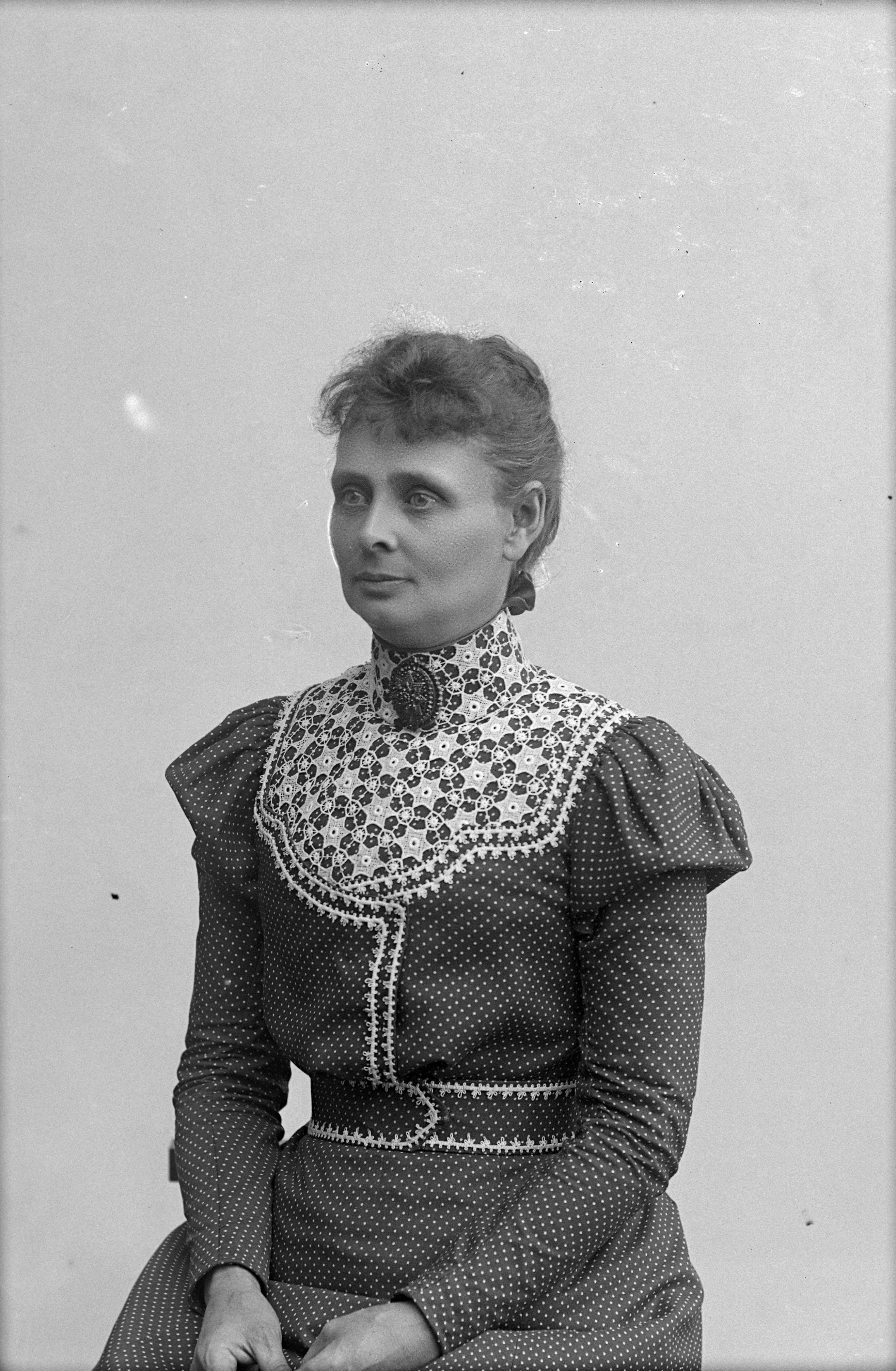 Beskrivning: Porträtt i halvfigur av fru Gleerup.