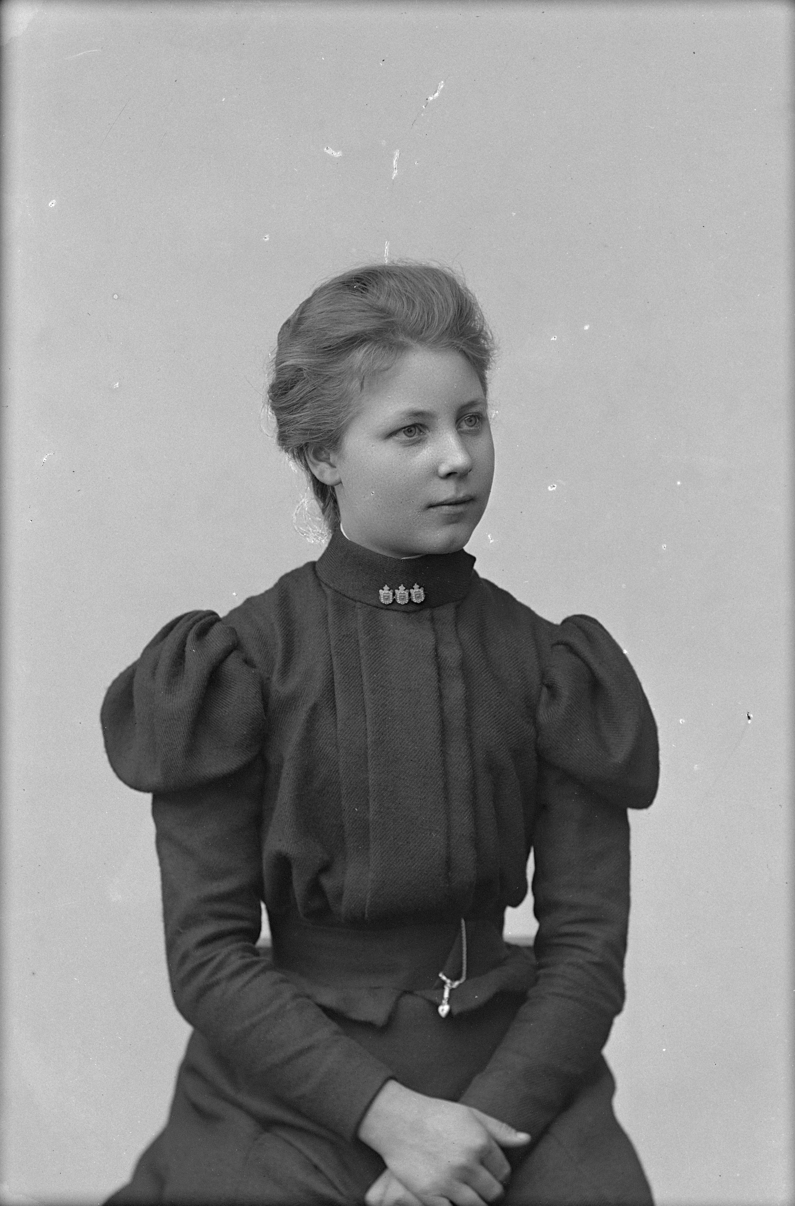 Beskrivning: Porträtt i halvfigur av Gunhild Nilsson.