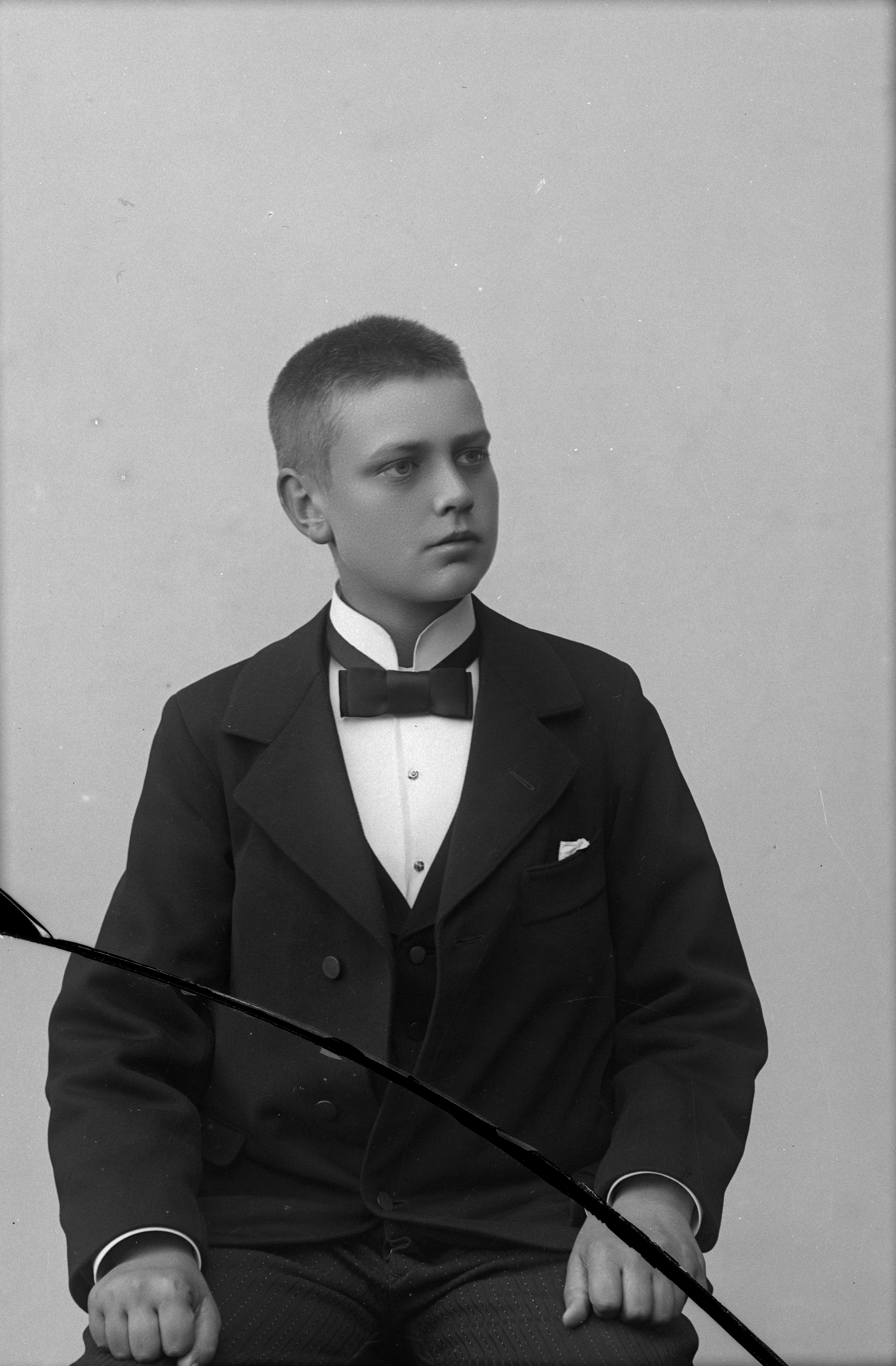 Beskrivning: Porträtt i halvfigur av Emil Nilsson.