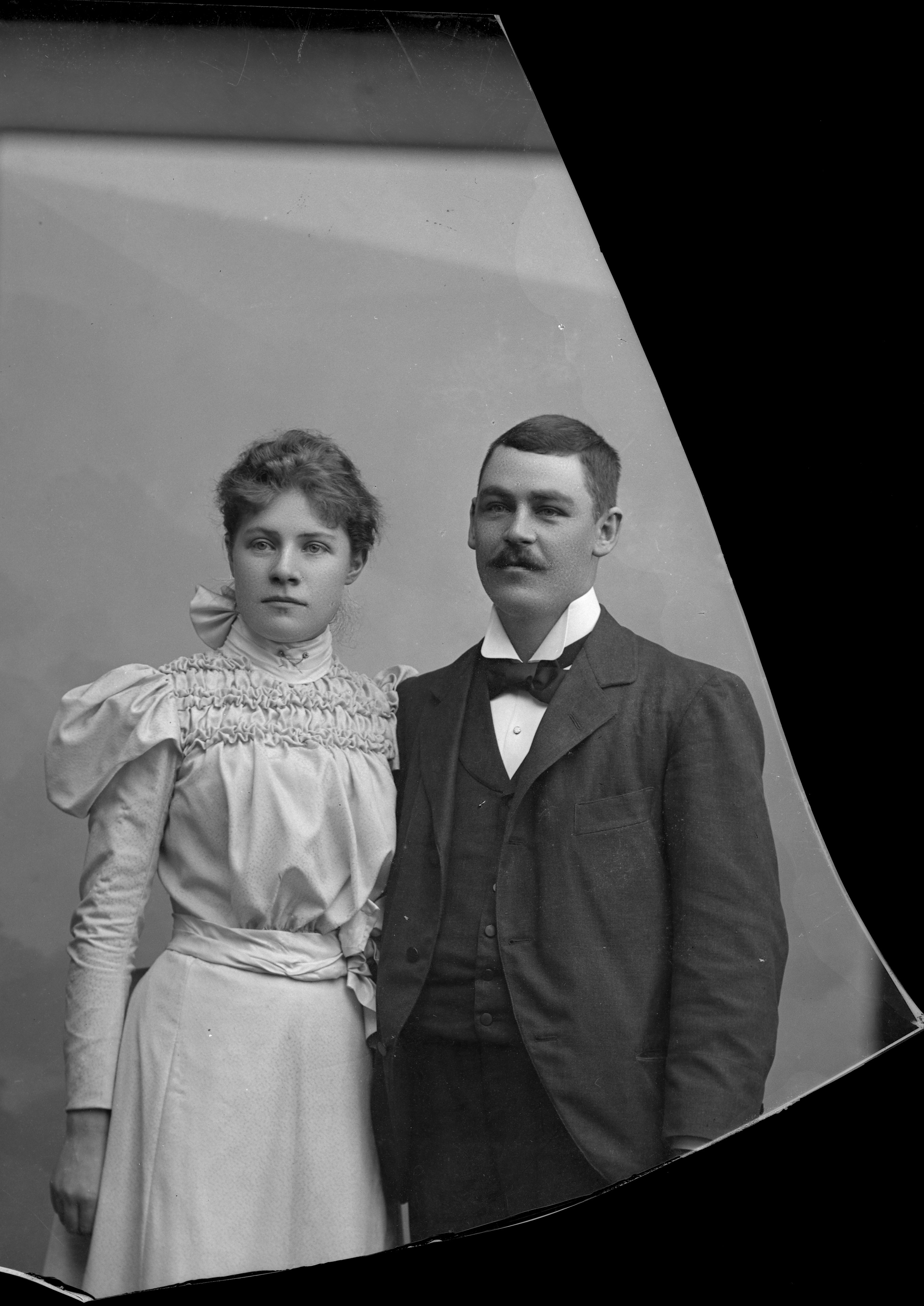 Beskrivning: Porträtt i helfigur av O. Verner med fru.
