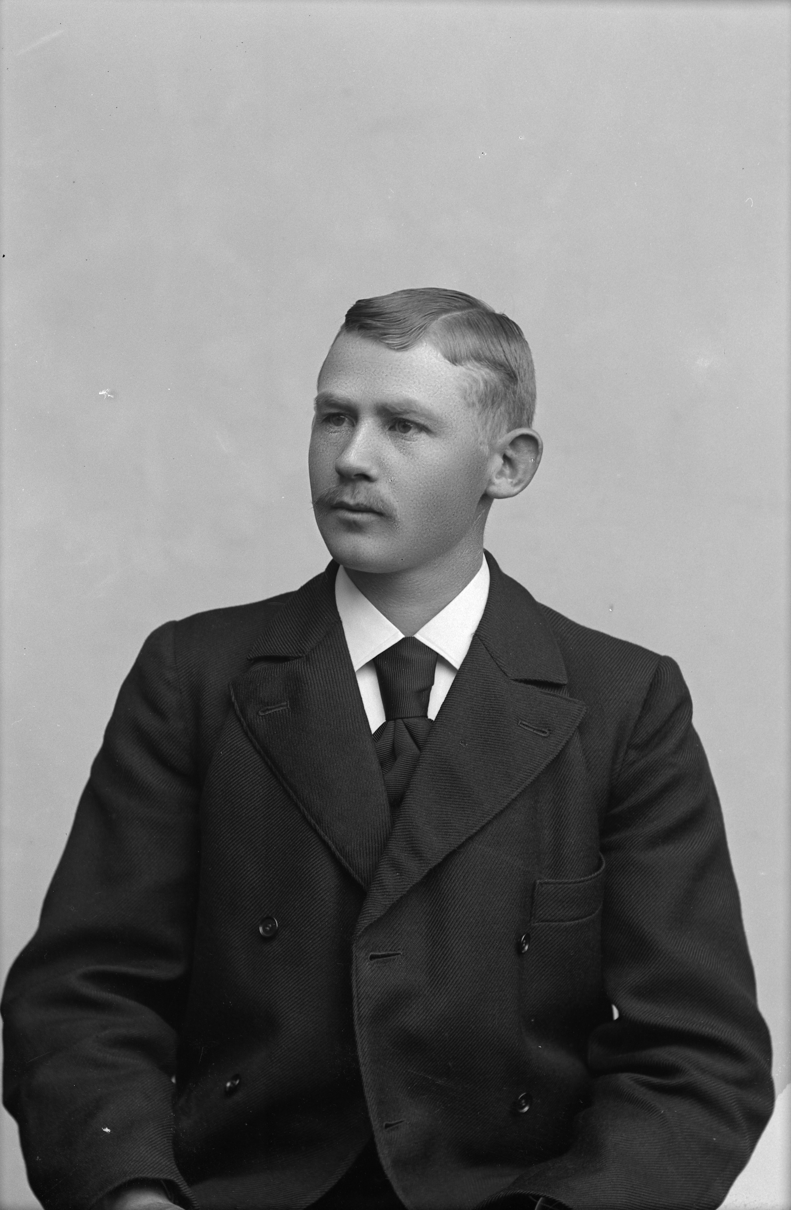 Beskrivning: Porträtt i halvfigur av P. Holmquist.