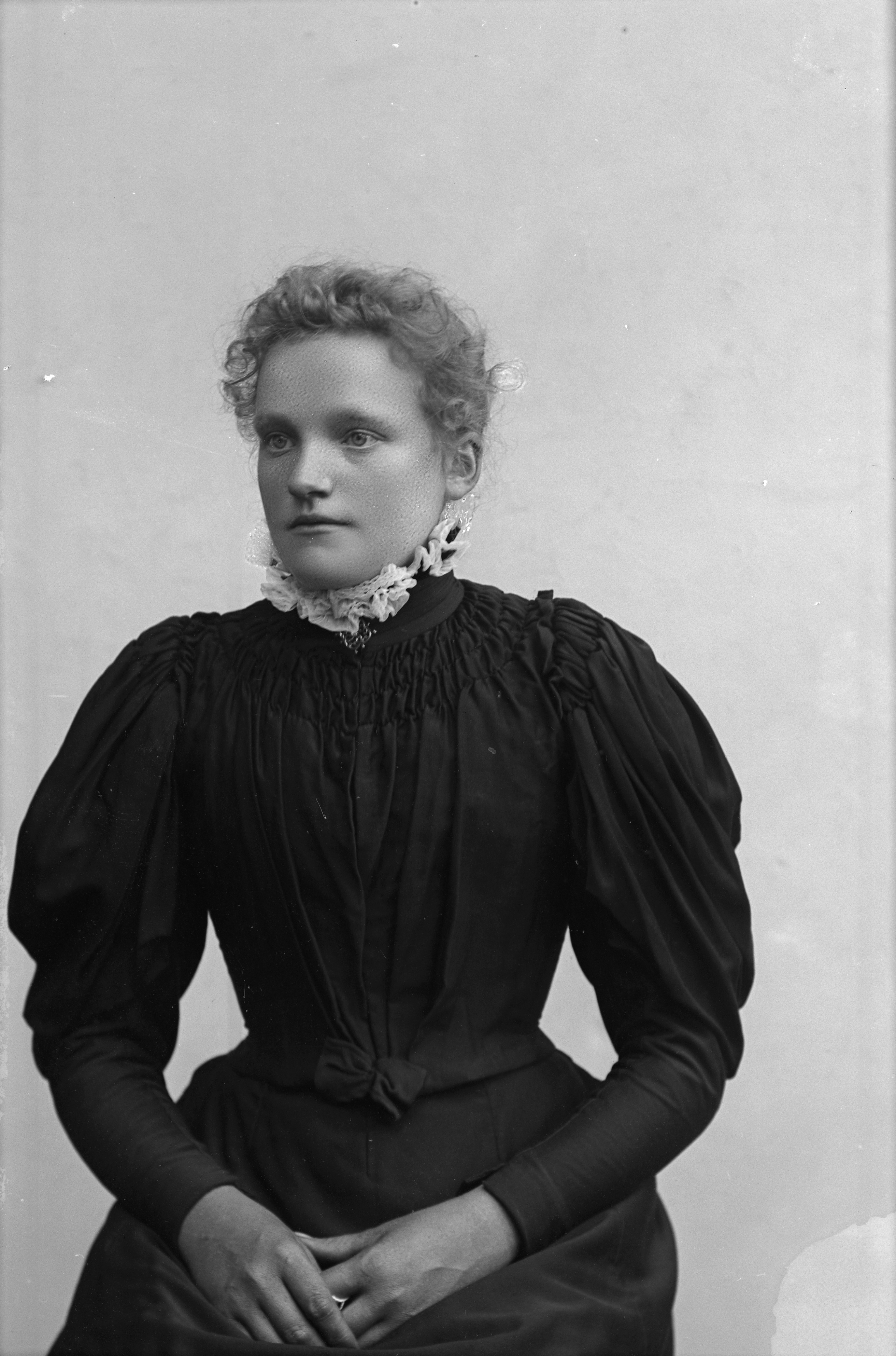 Beskrivning: Porträtt i halvfigur av Amanda Färdig.