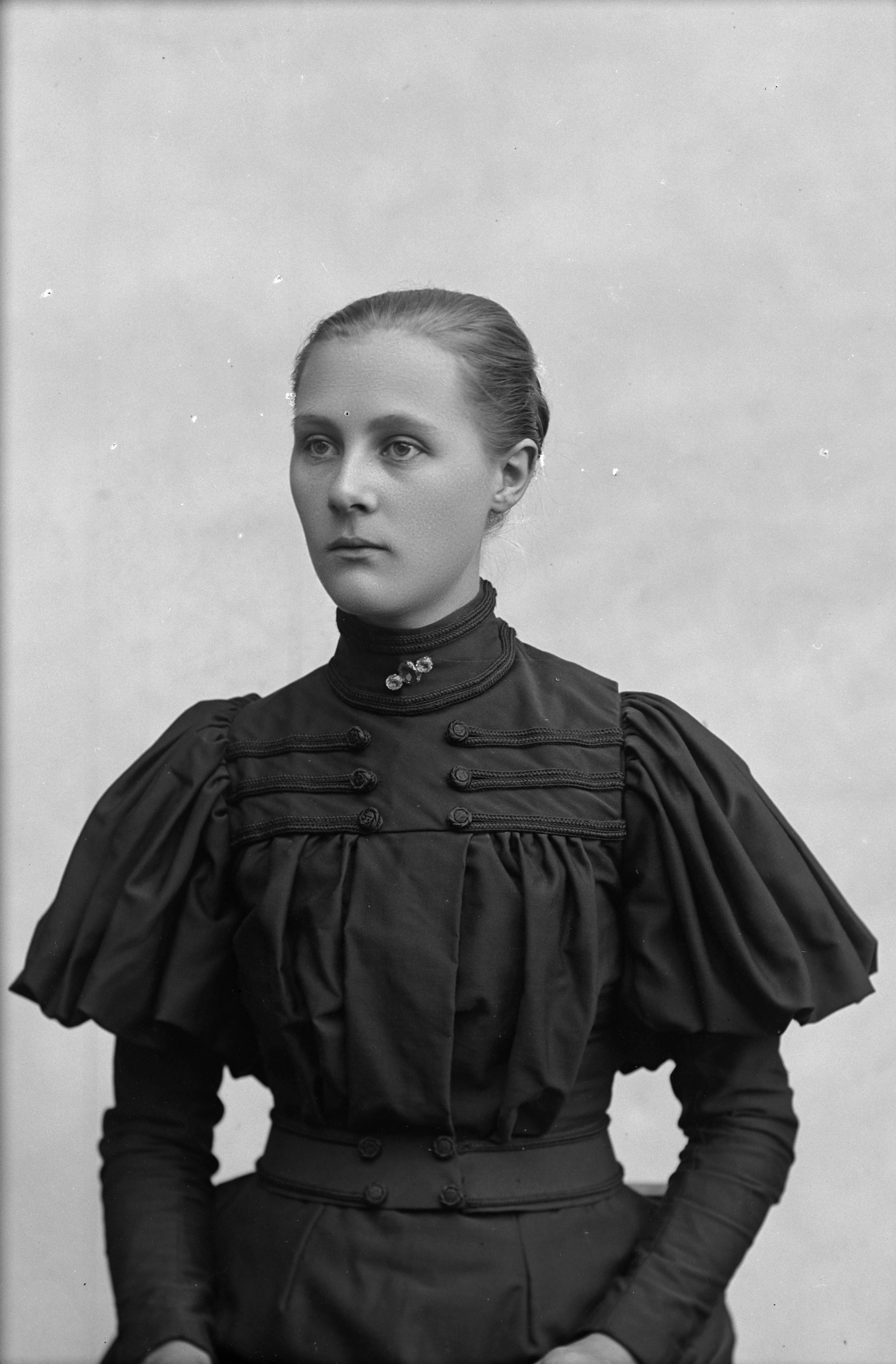 Beskrivning: Porträtt i halvfigur av fru Julin.