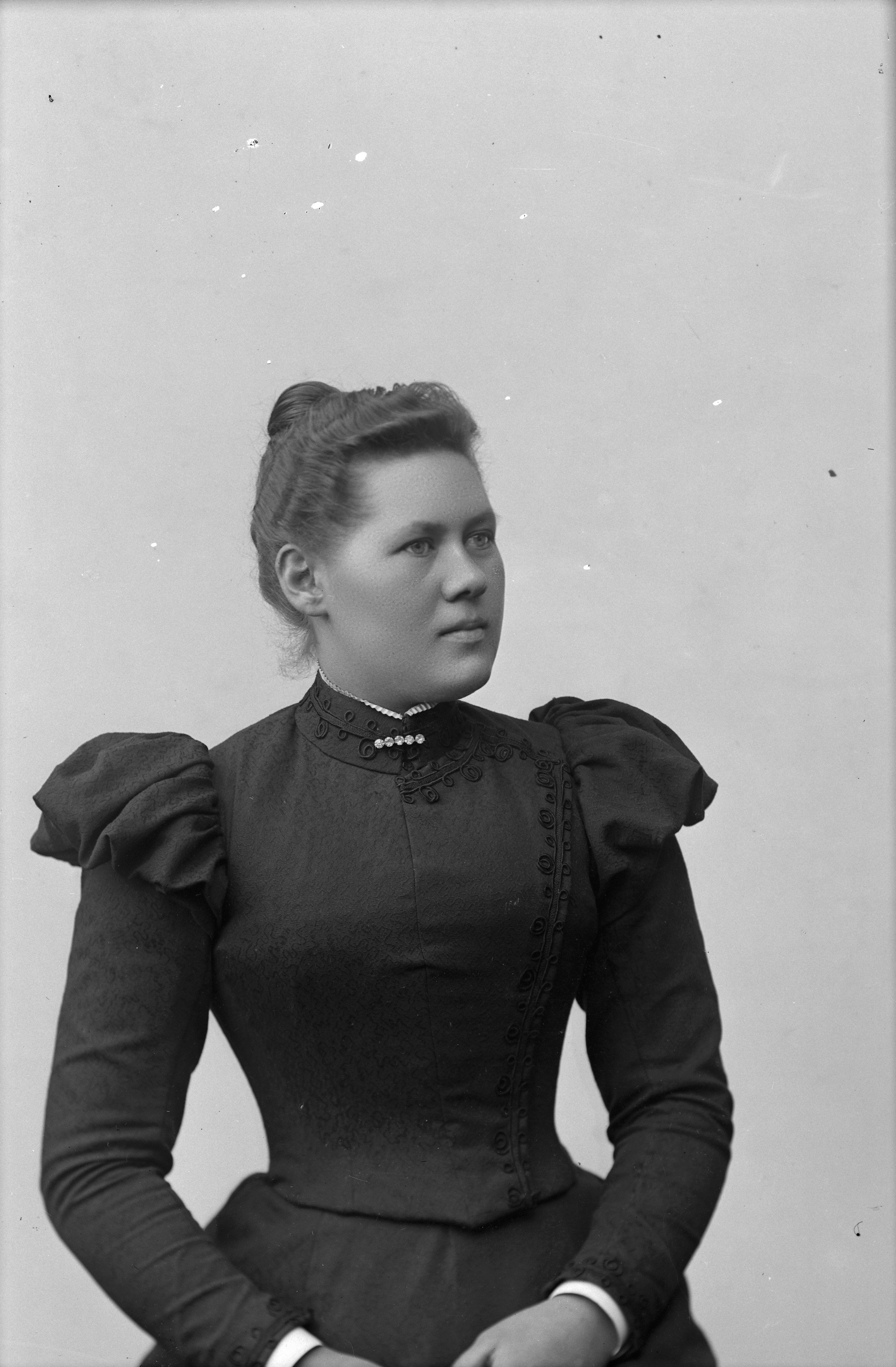 Beskrivning: Porträtt i halvfigur Thilda Nilson.