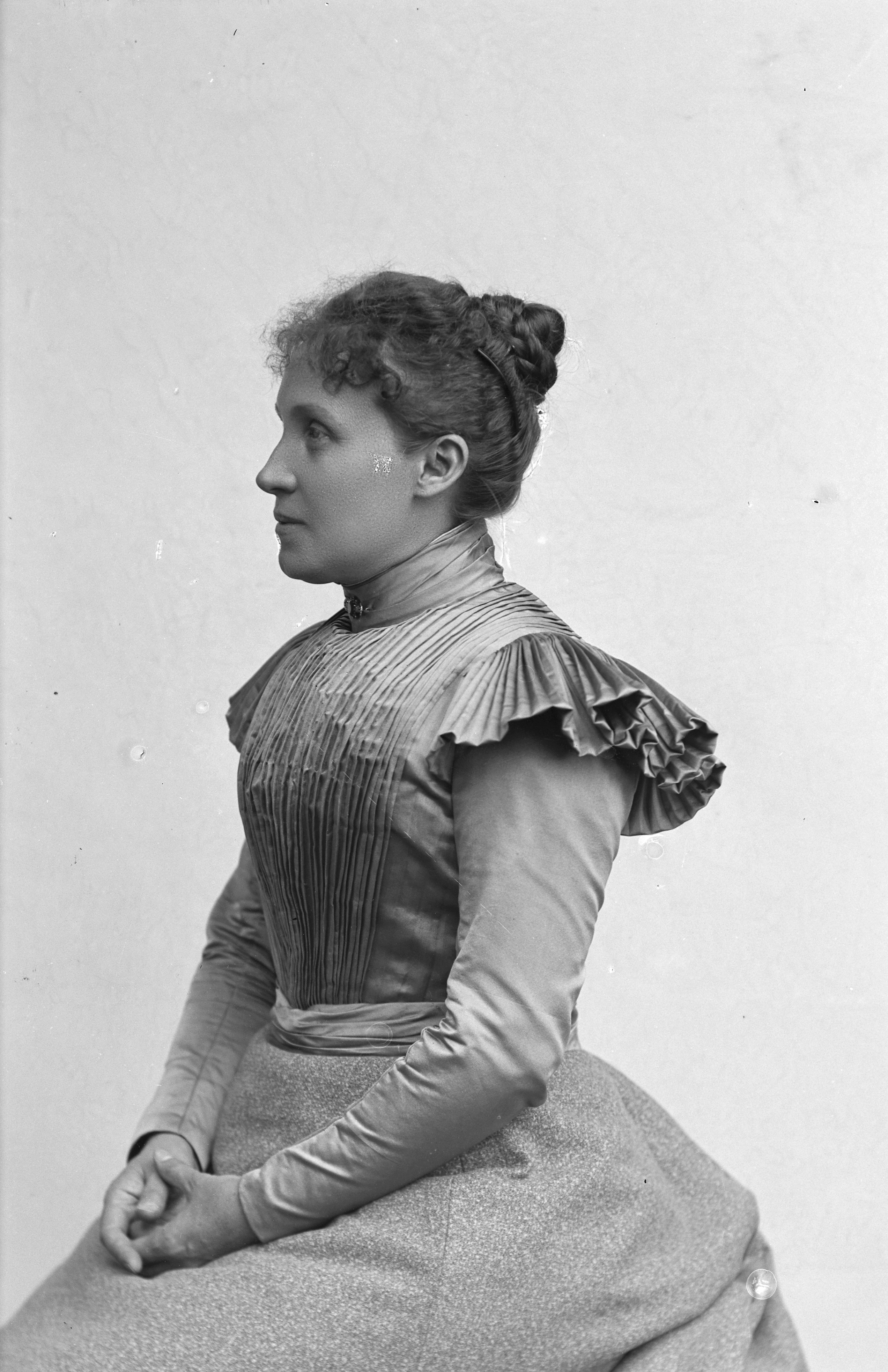 Porträtt i halvfigur, profil, av fru Holmberg.