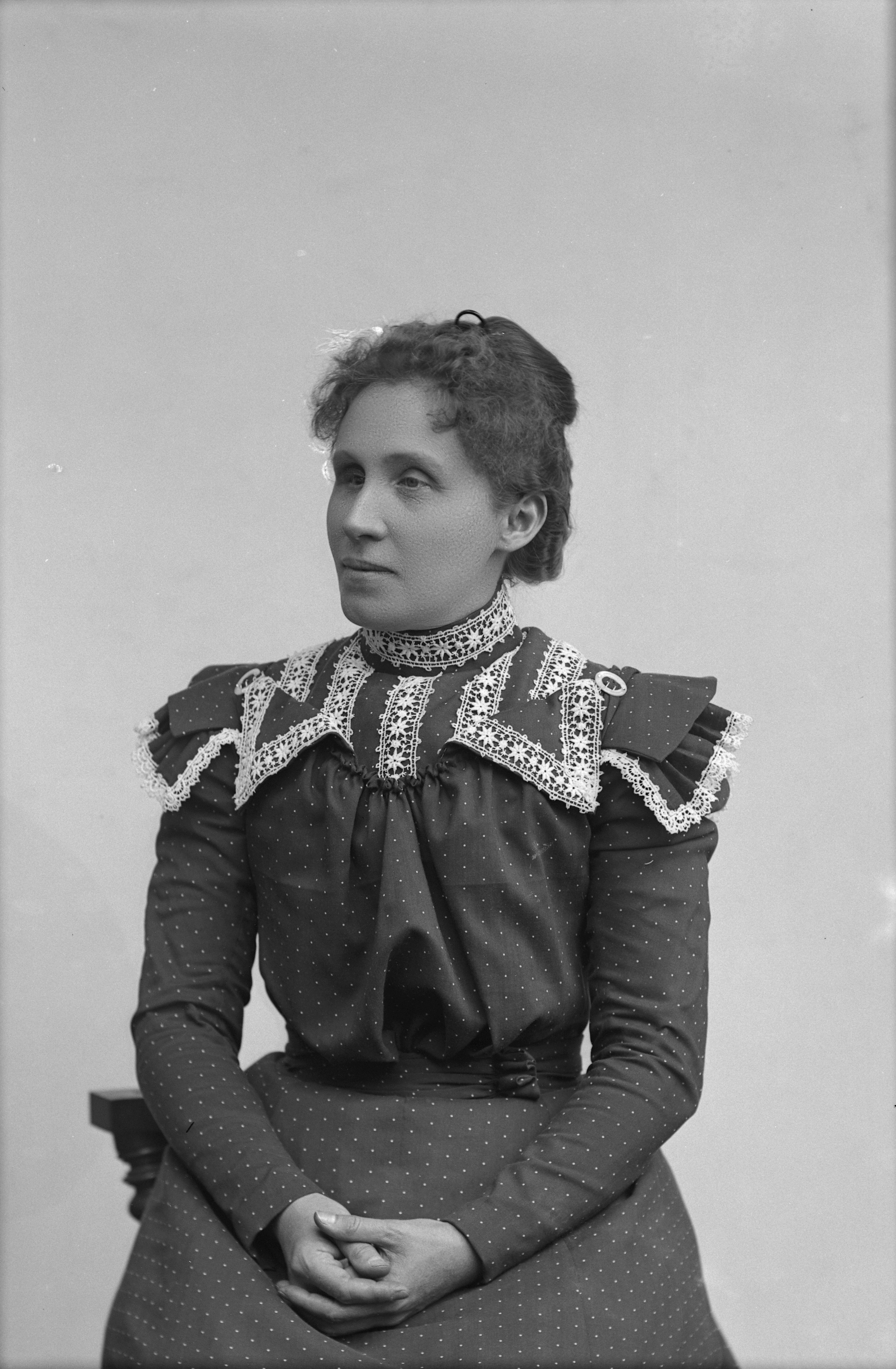 Beskrivning: Porträtt i halvfigur av fru Holmberg.