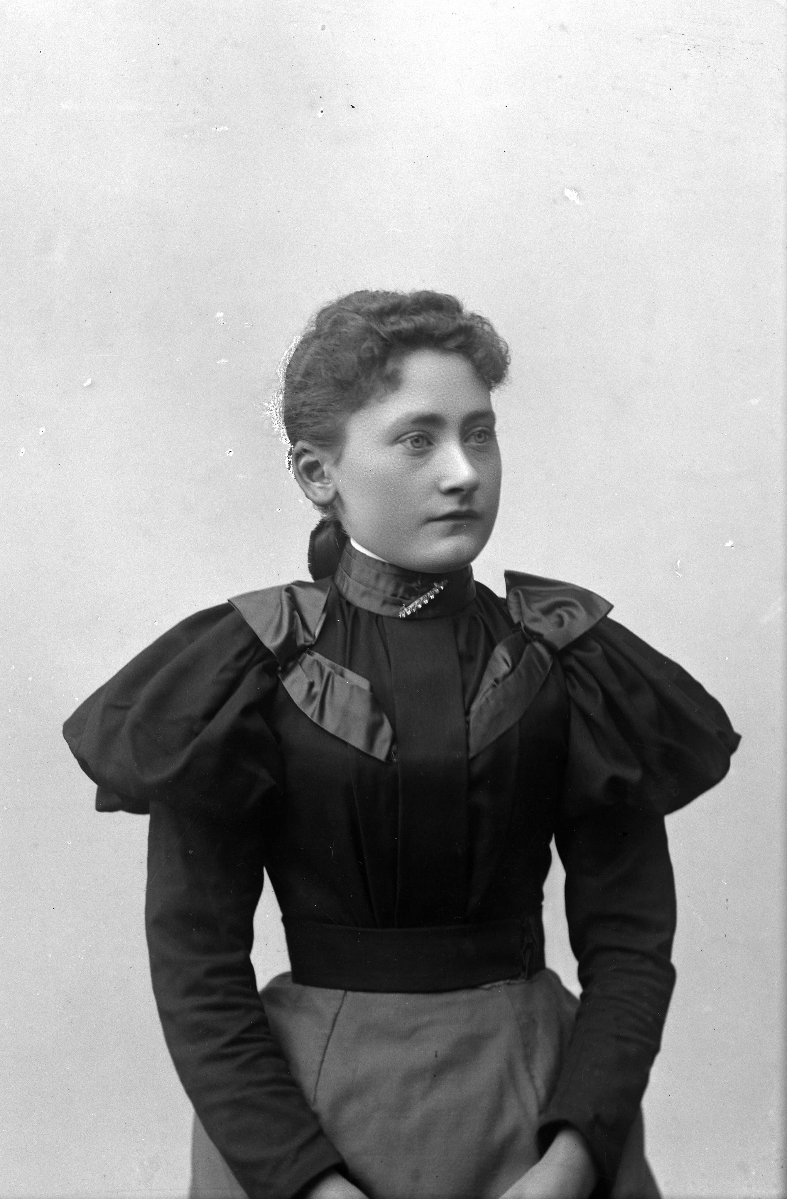 Beskrivning: Porträtt i halvfigur av Selma Persson.
