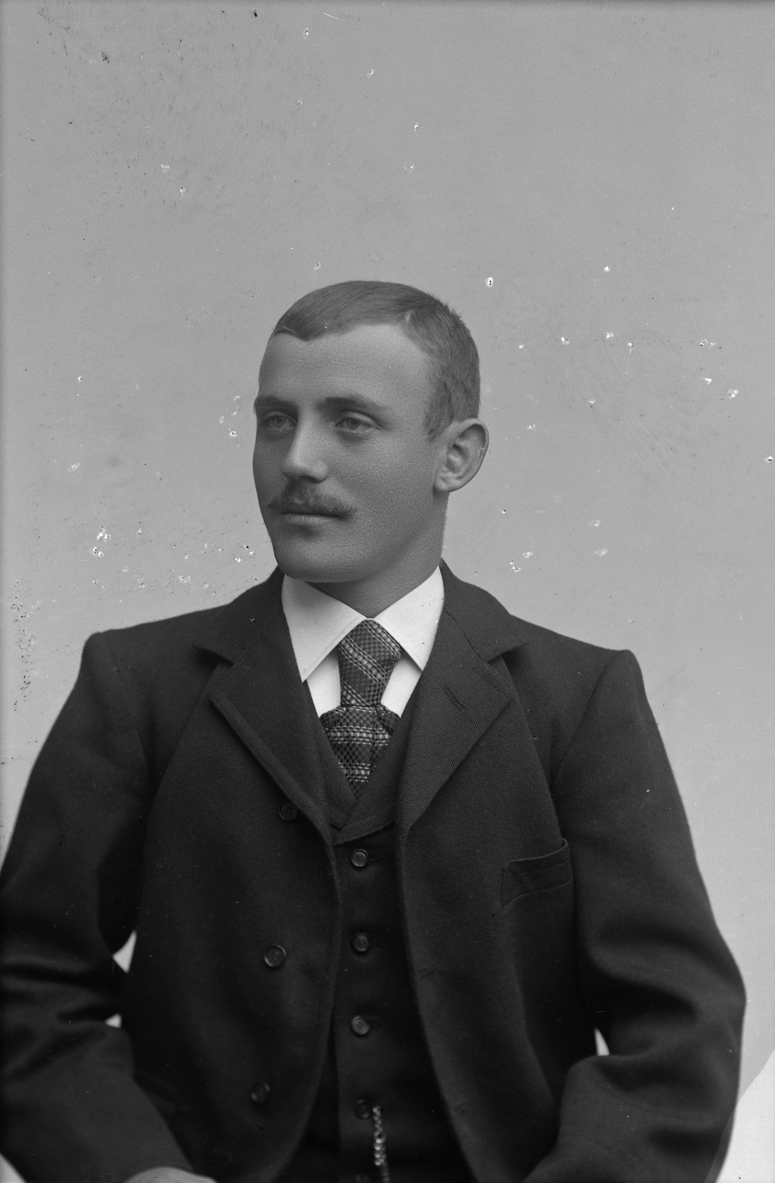 Beskrivning: Porträtt i halvfigur av Julius Persson.