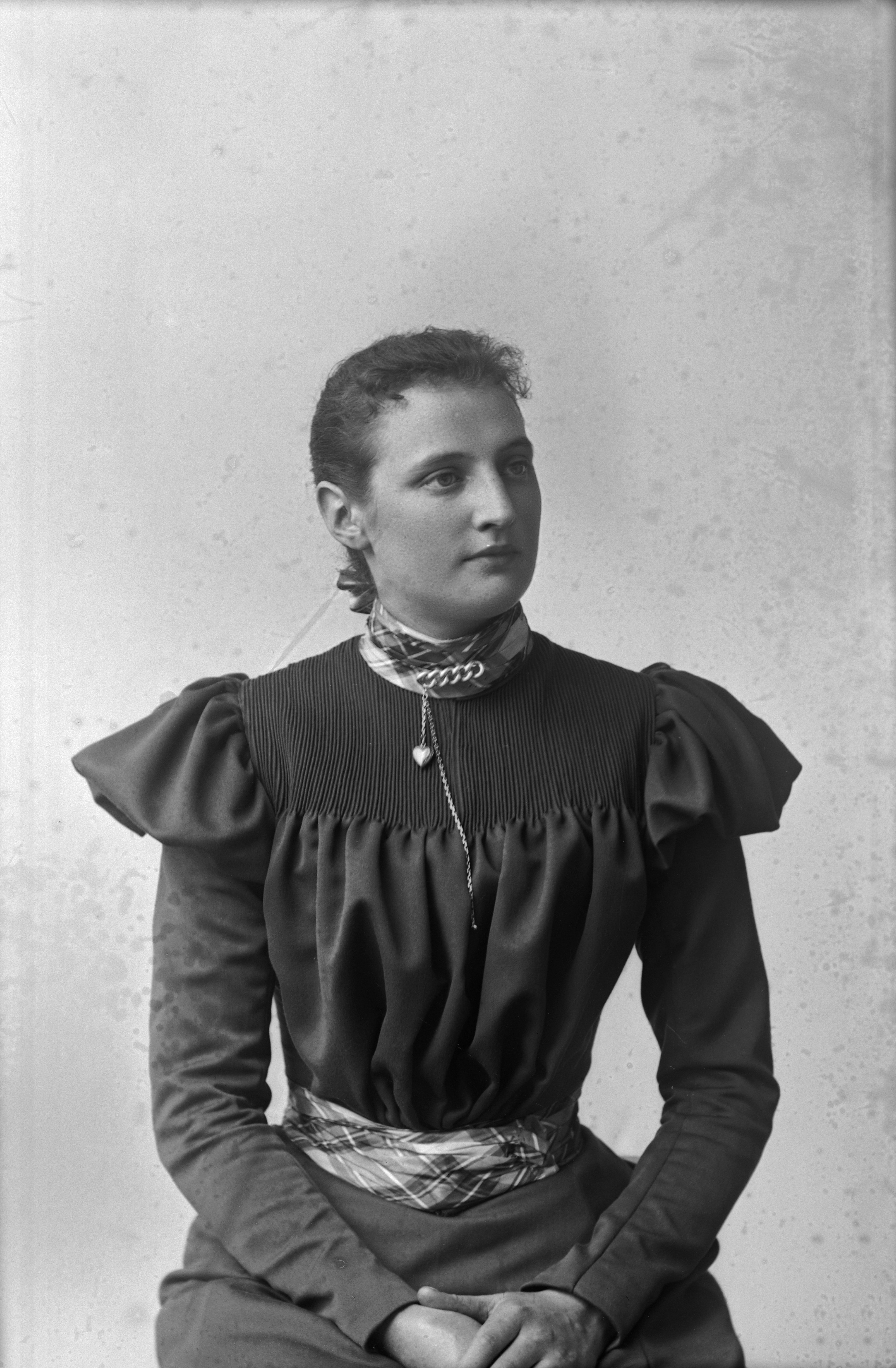 Beskrivning: Porträtt i halvfigur av fröken Malmquist.