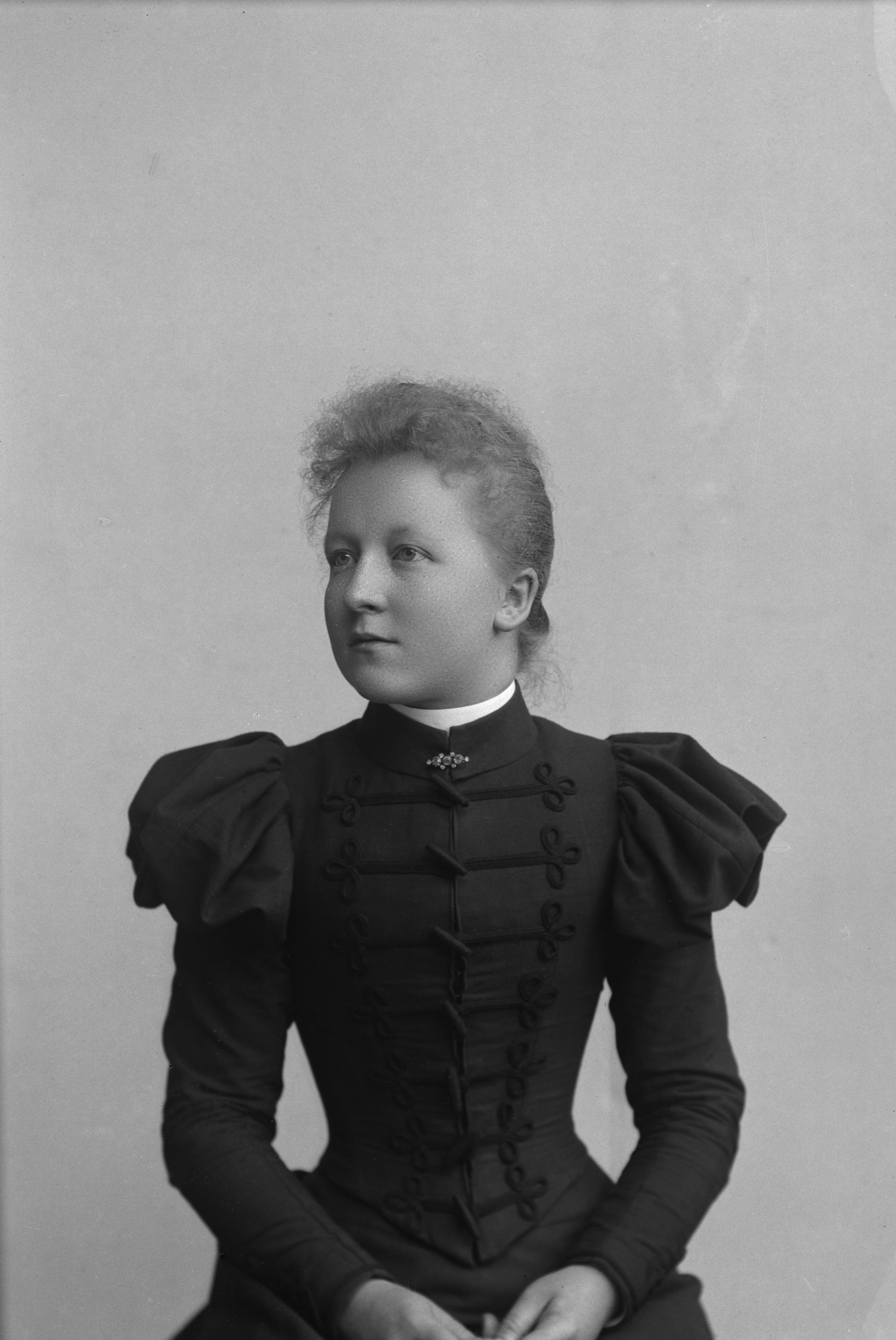 Beskrivning: Porträtt i halvfigur av Ida Lindblad.