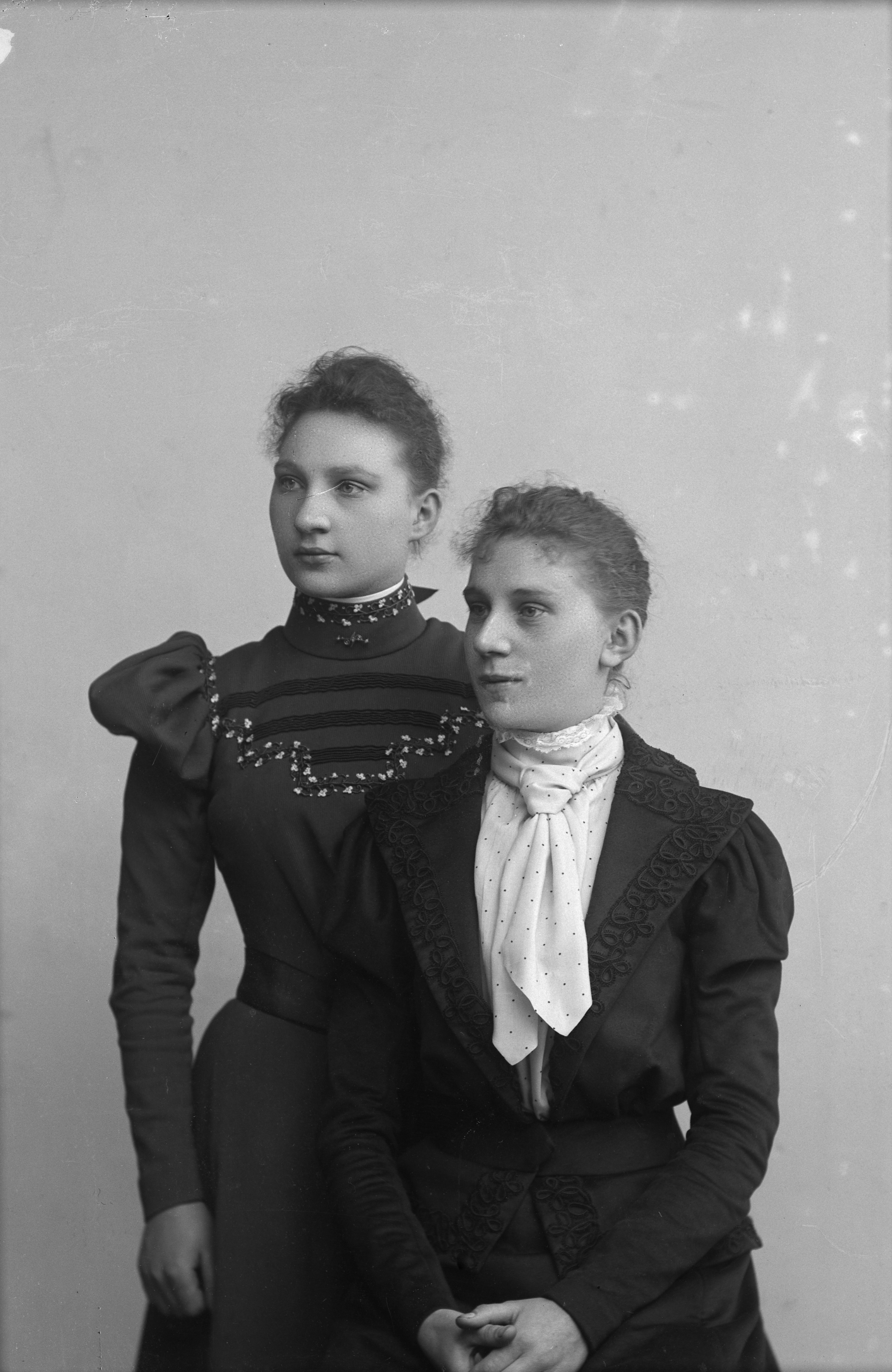 Beskrivning: Porträtt i helfigur av Nanna Andersson med okänd kvinna.
