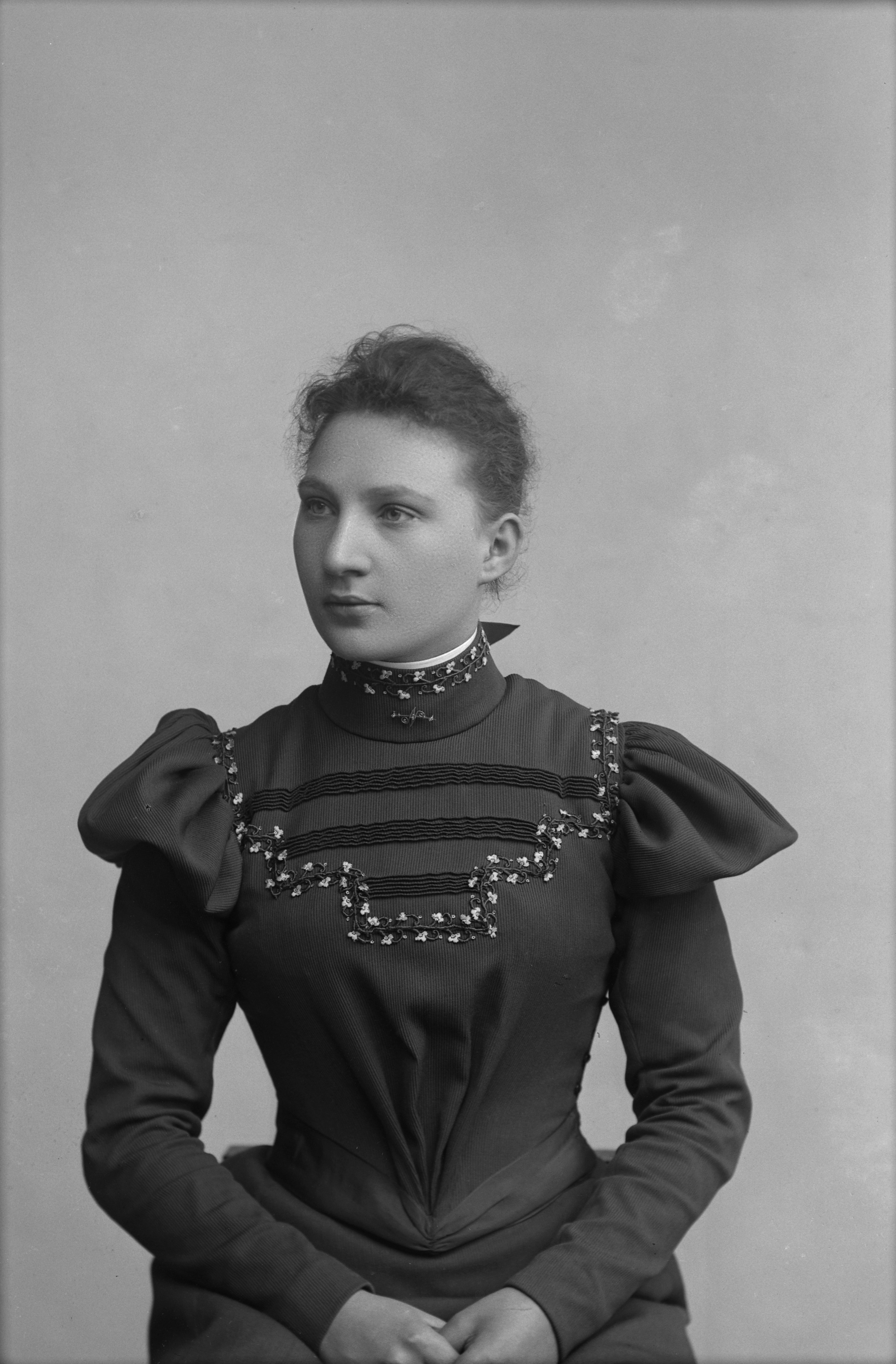 Beskrivning: Porträtt i halvfigur av Nanna Andersson.