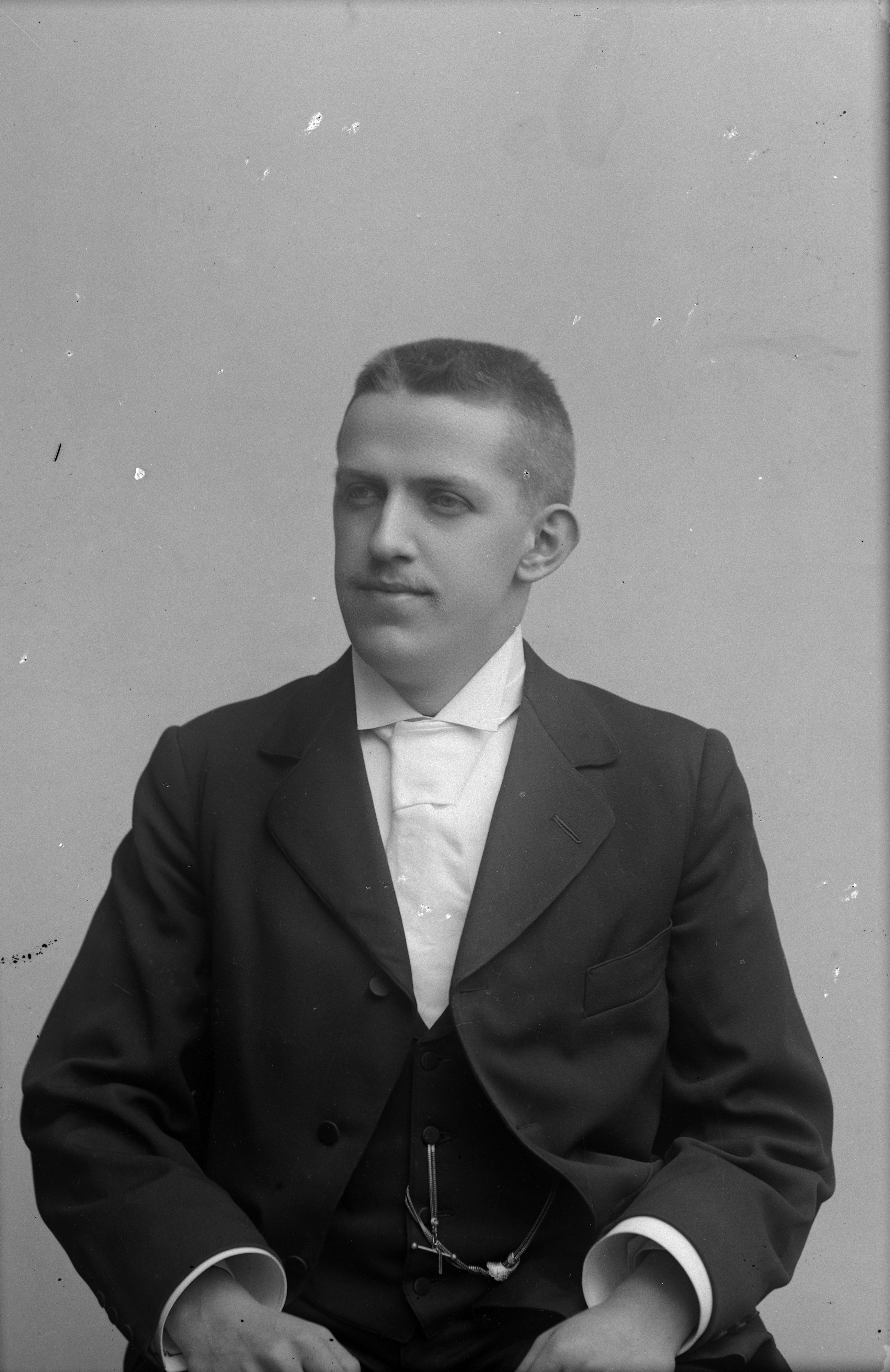 Beskrivning: Porträtt i halvfigur av O. Hansen.