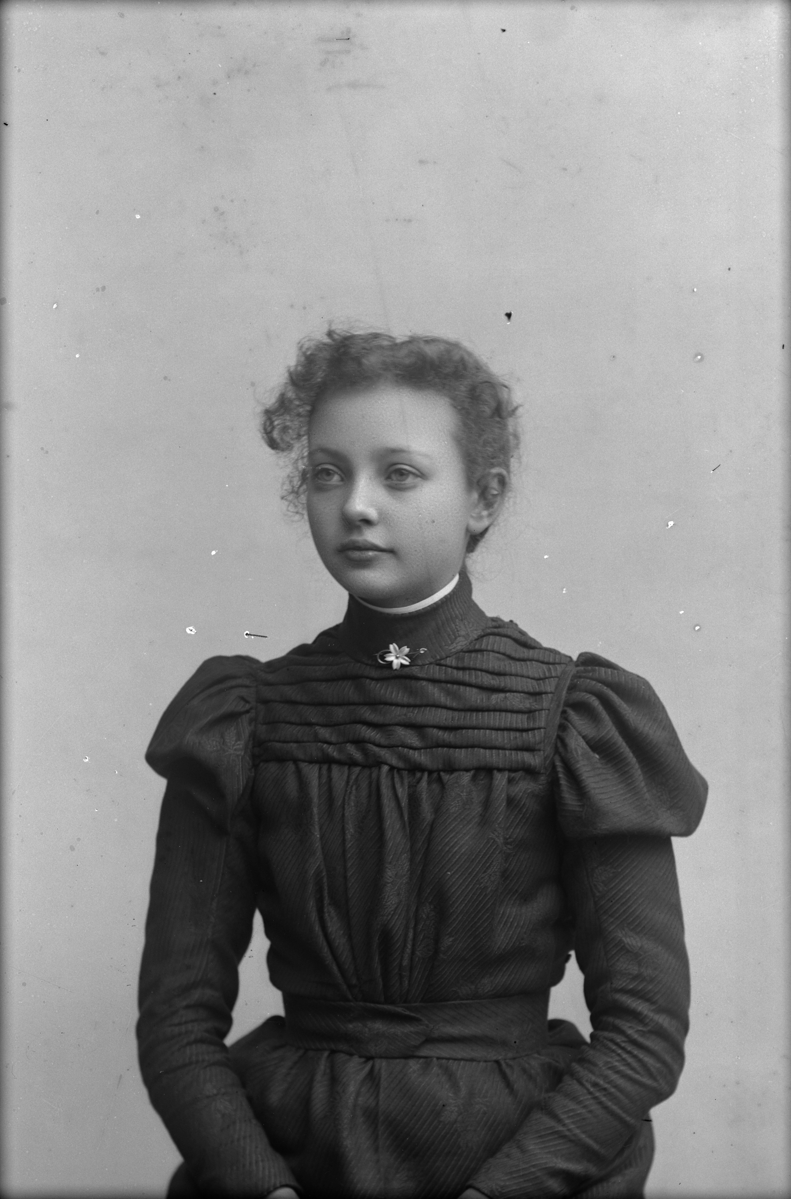 Beskrivning: Porträtt i halvfigur av Sigrid Franzon.