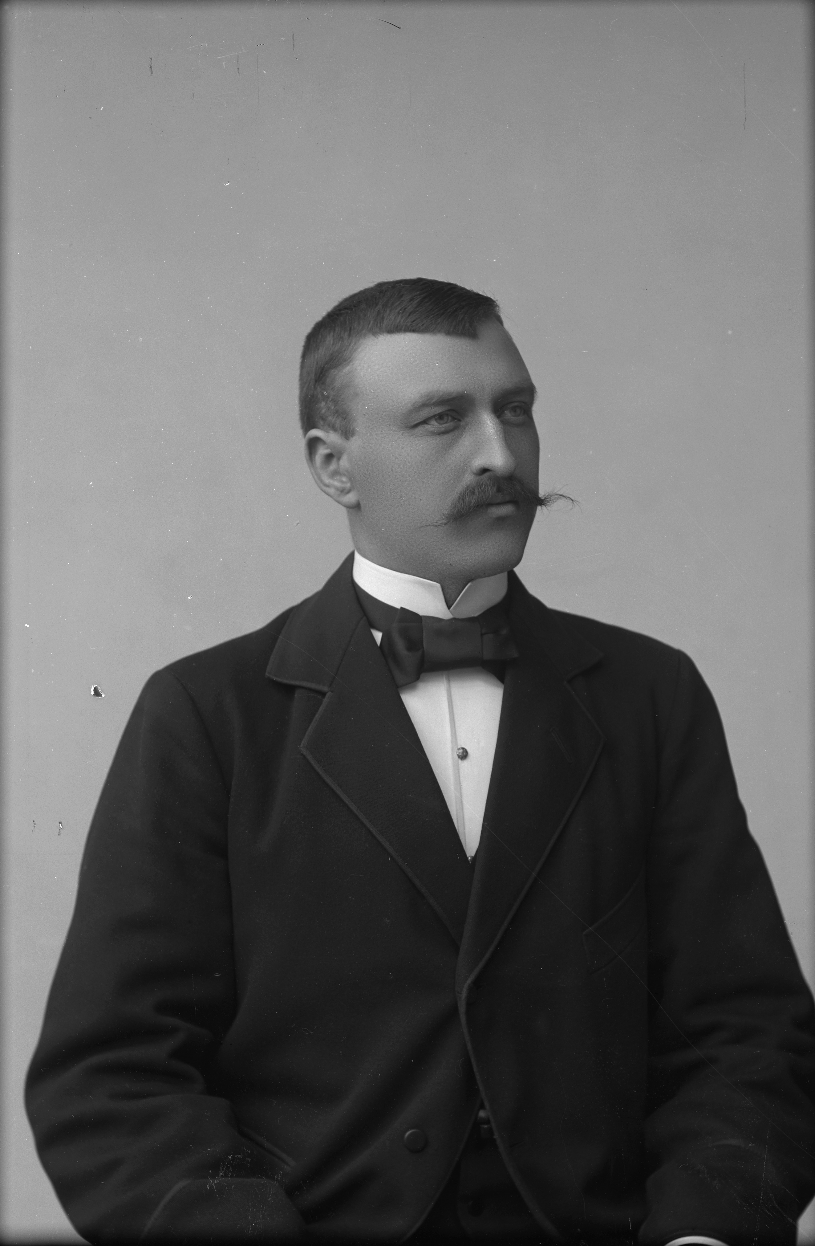 Beskrivning: Porträtt i halvfigur av A. E. Johansson.