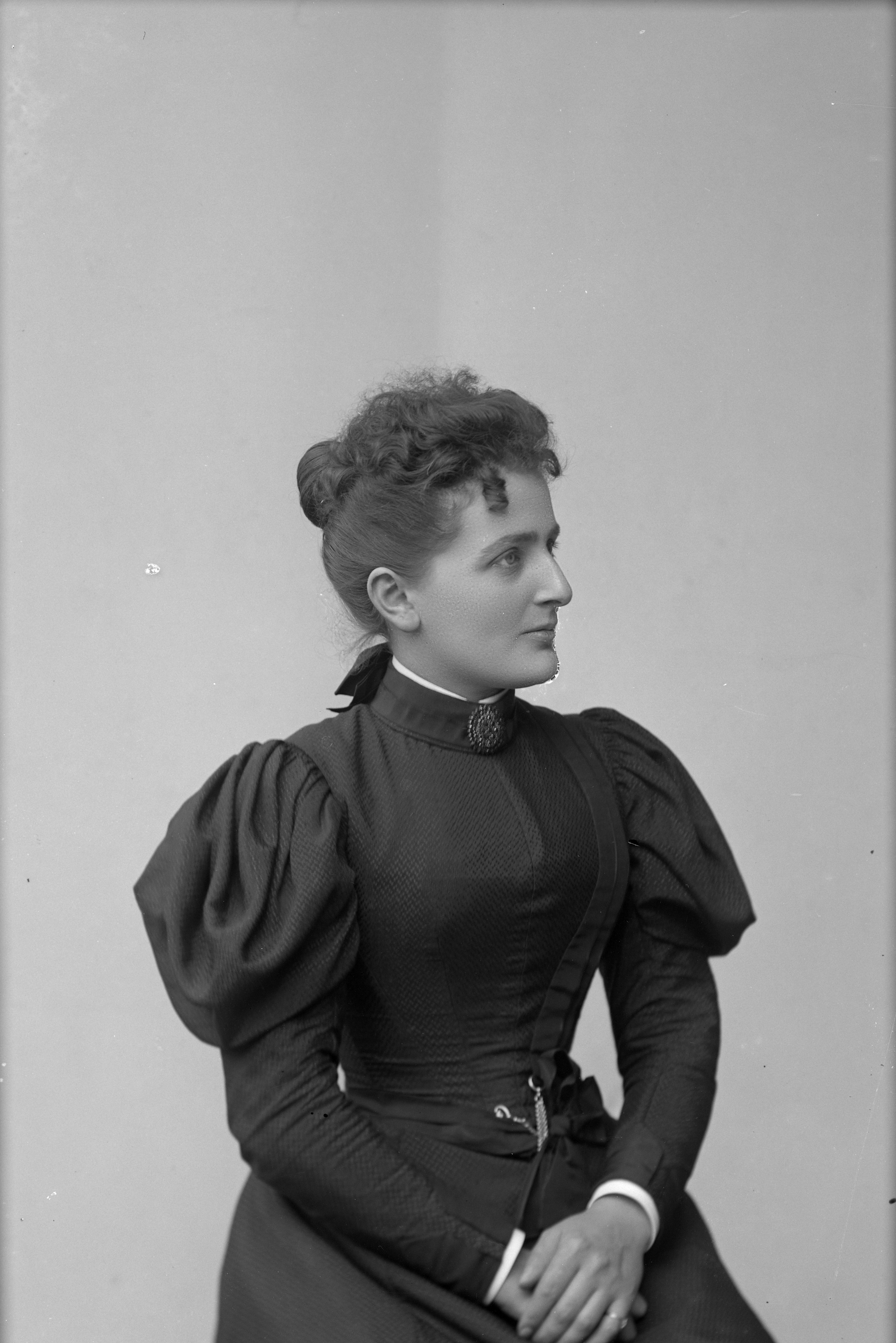 Beskrivning: Porträtt i halvfigur av fröken Grekersson.