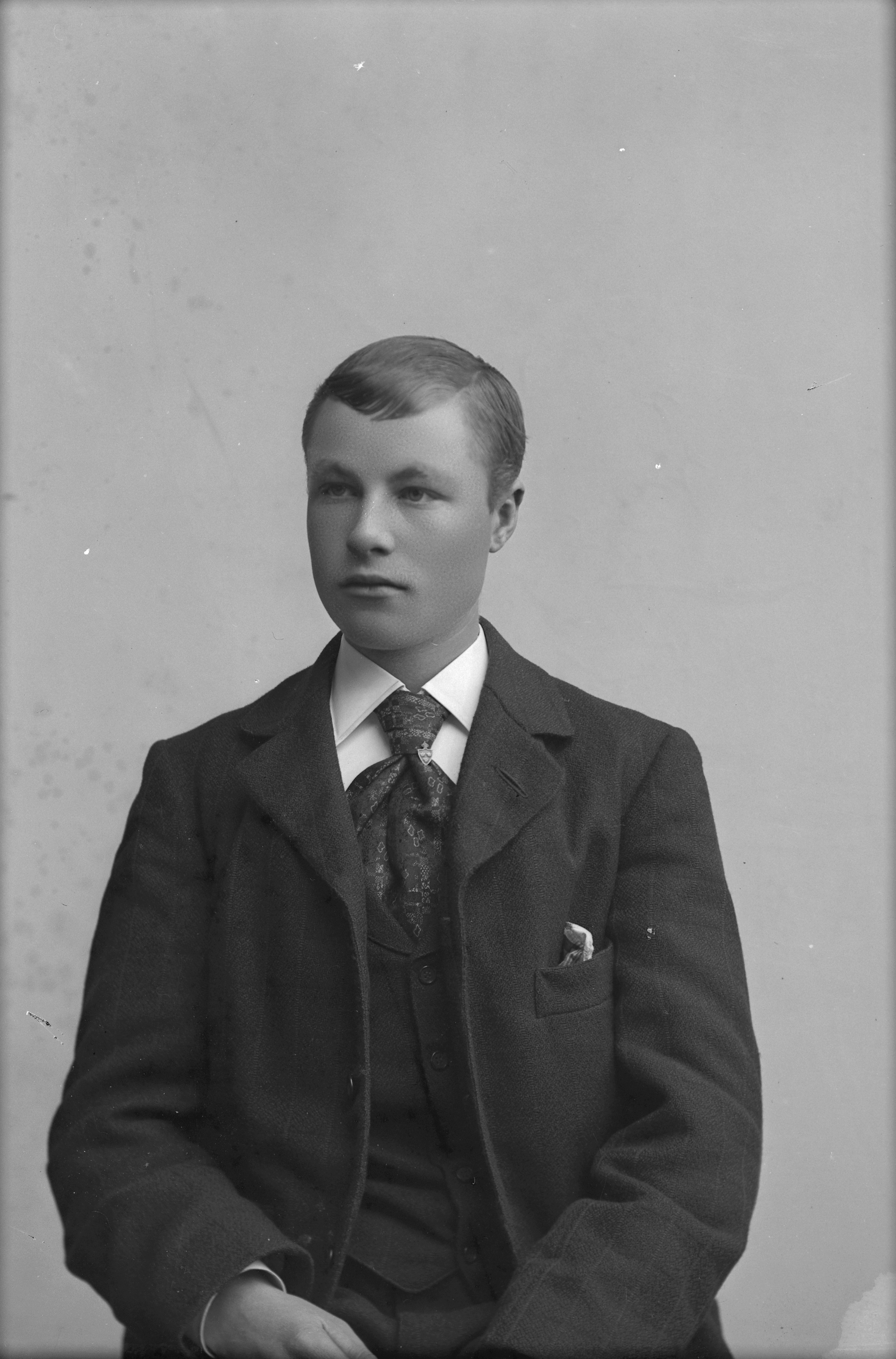 Beskrivning: Porträtt i halvfigur av Axel Jacobsson.