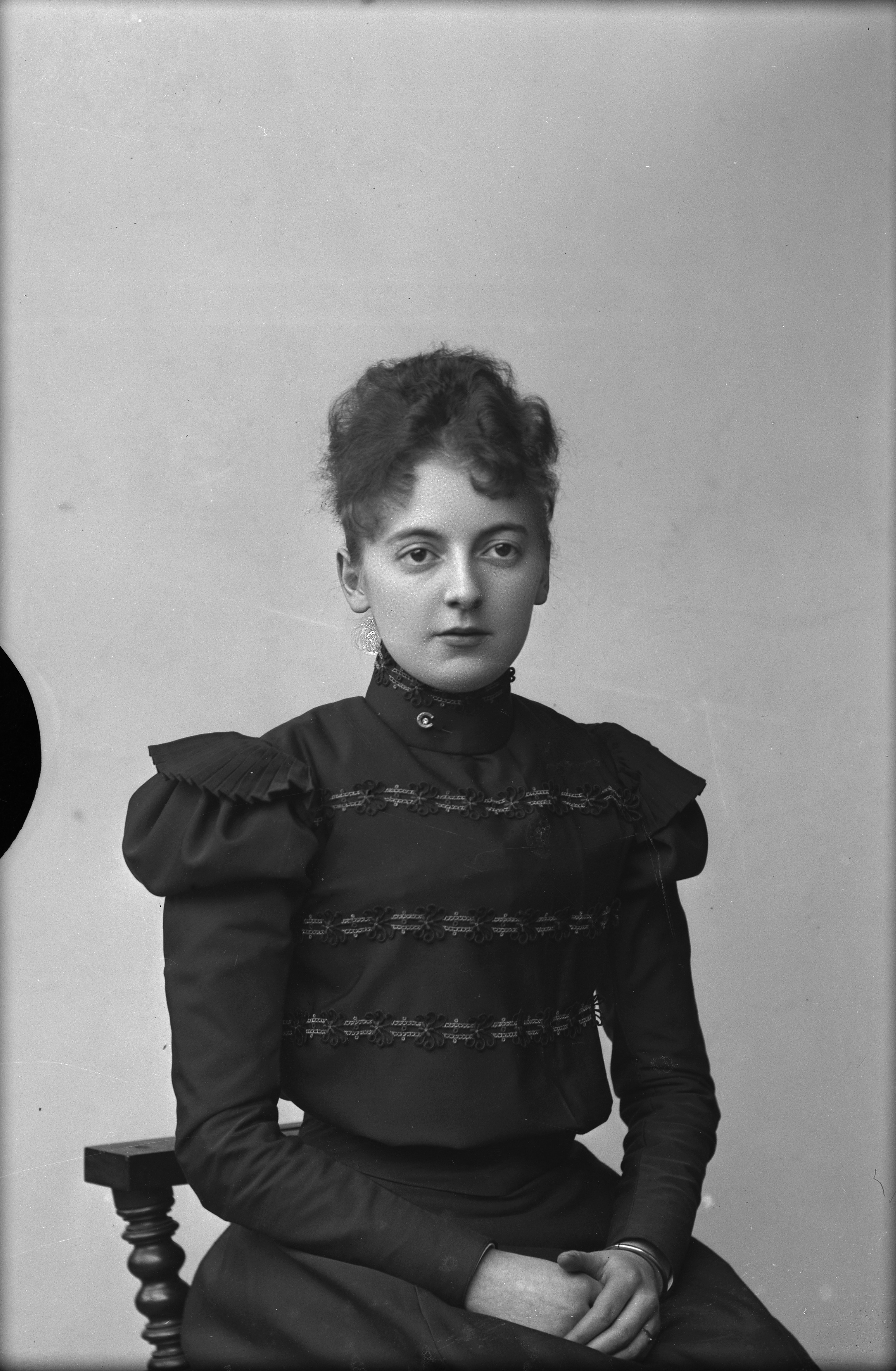 Beskrivning: Porträtt i halvfigur av Hedvig Nilsson.