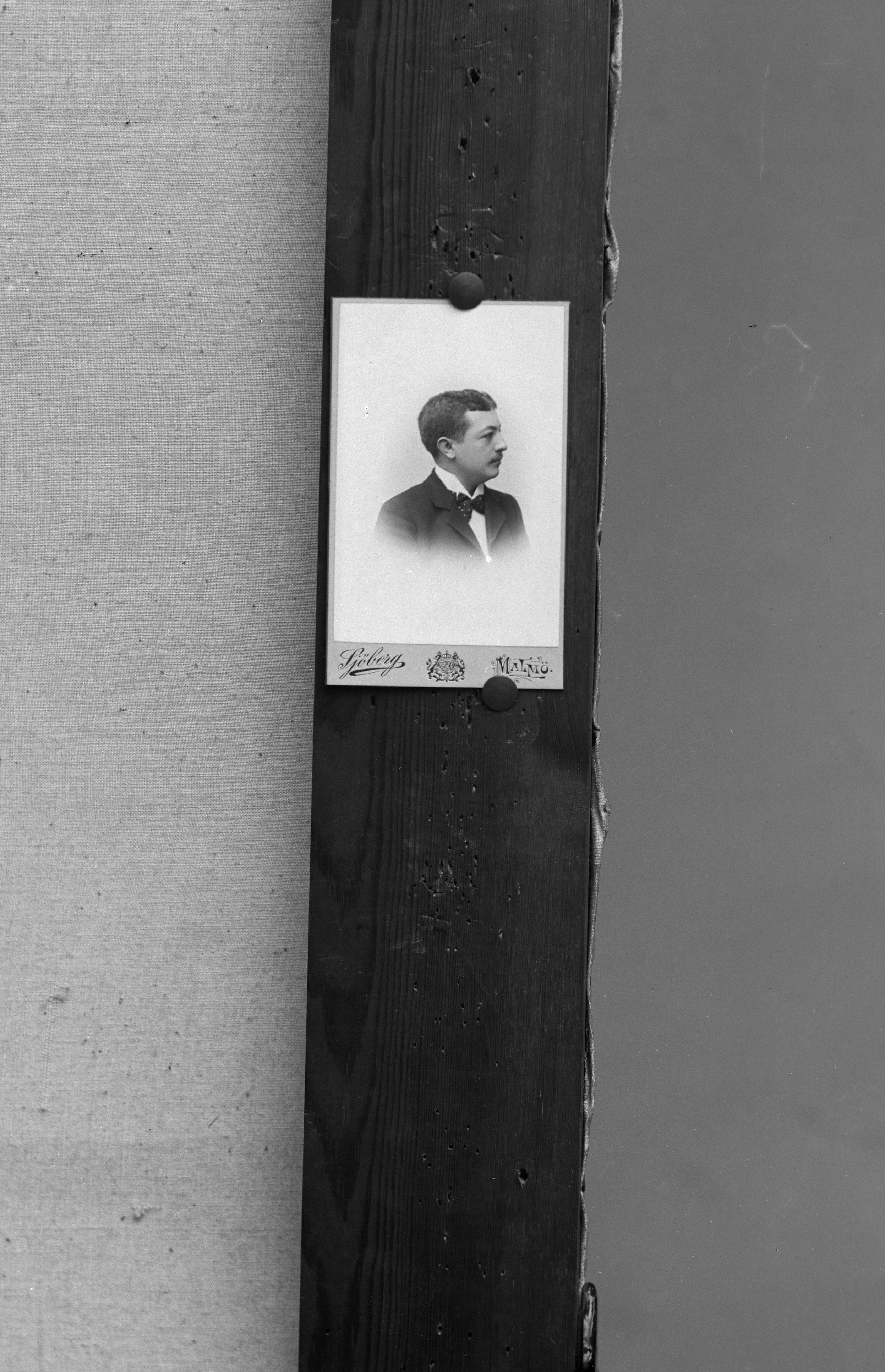 Porträtt i halvfigur, profil, av grosshandlare Fritz Klein. Visitkort med ateljélogotyp, "Sjöberg /Malmö".