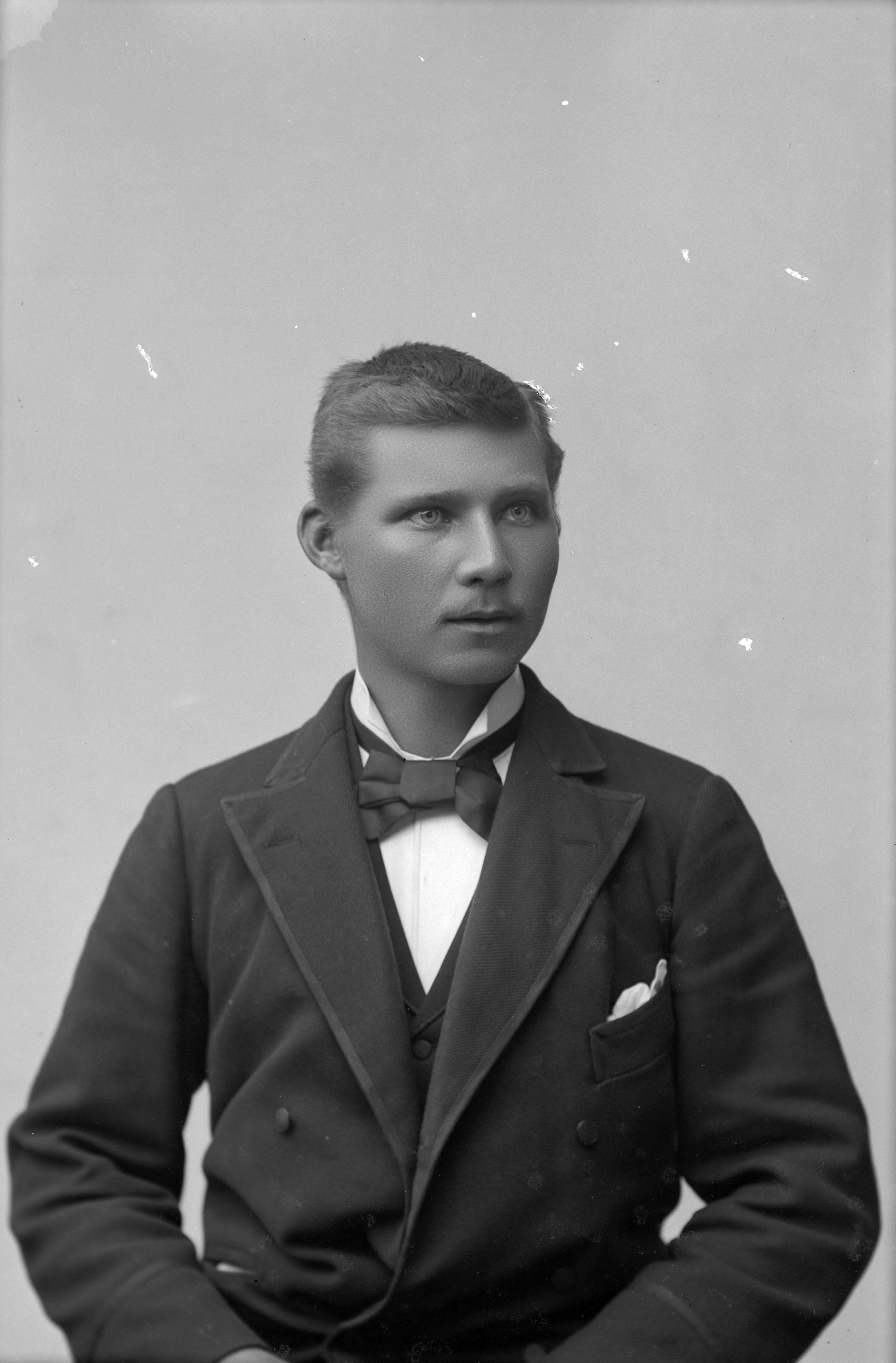 Beskrivning: Porträtt i halvfigur av C. J. Carlsson.