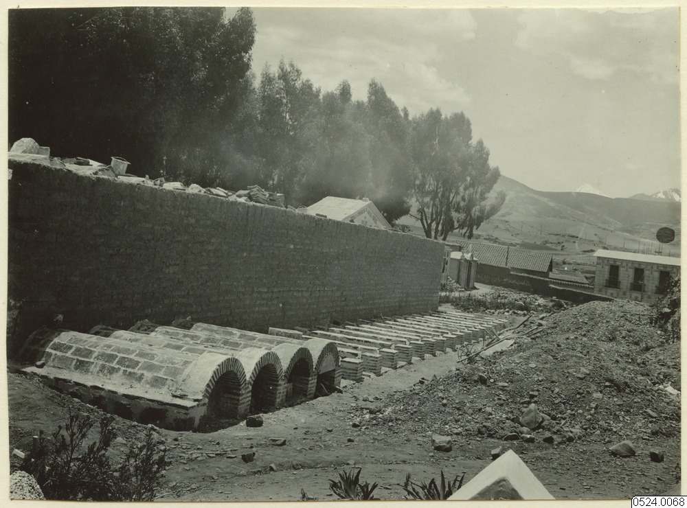 Ett "katakomb" gravhus under byggnad. Till vänster äro fyra stycken gravkammare redan uppmurade.