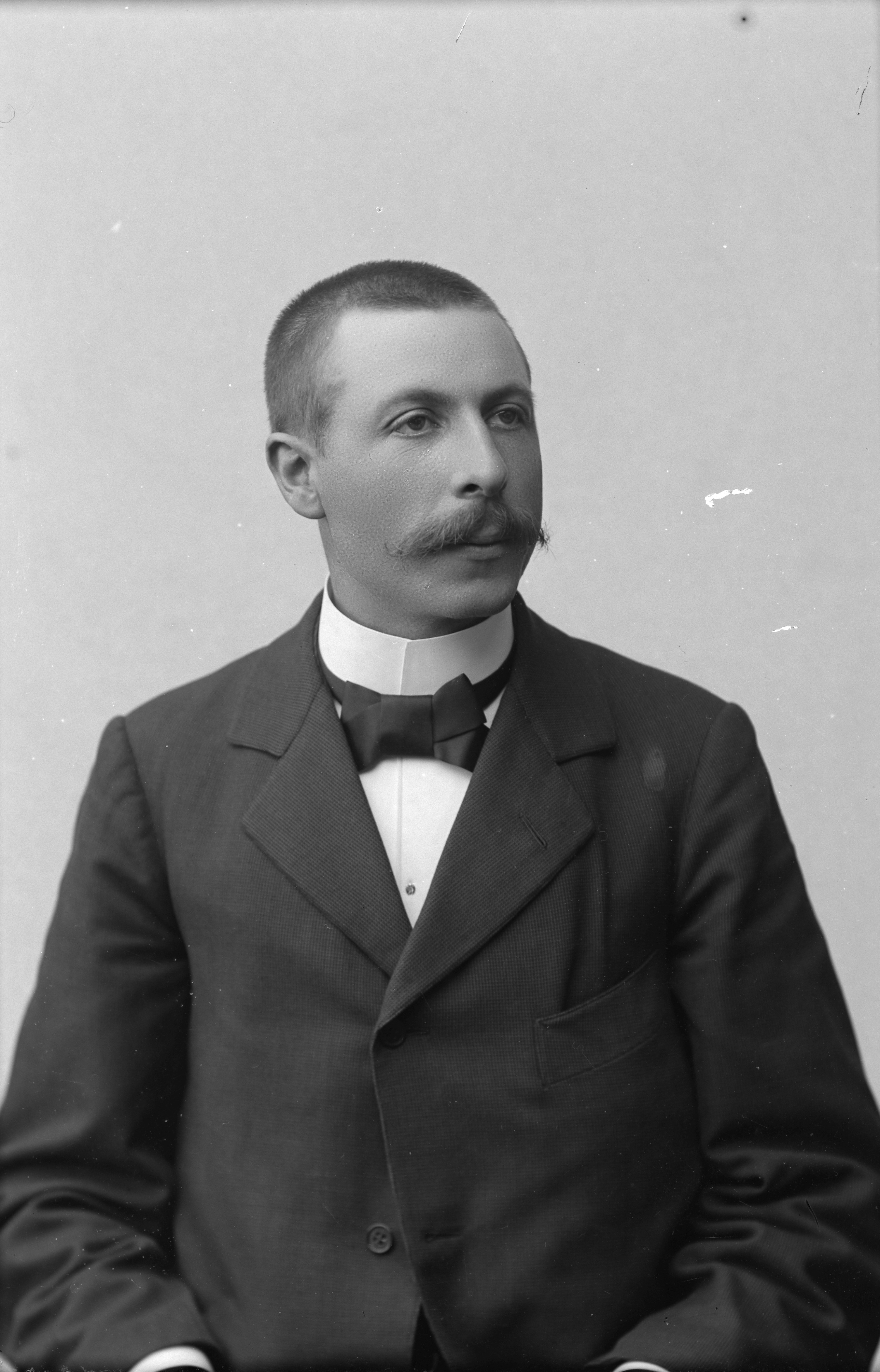 Beskrivning: Porträtt i halvfigur av kontorist N. P. Brodin vid Hörstedt & Co.
