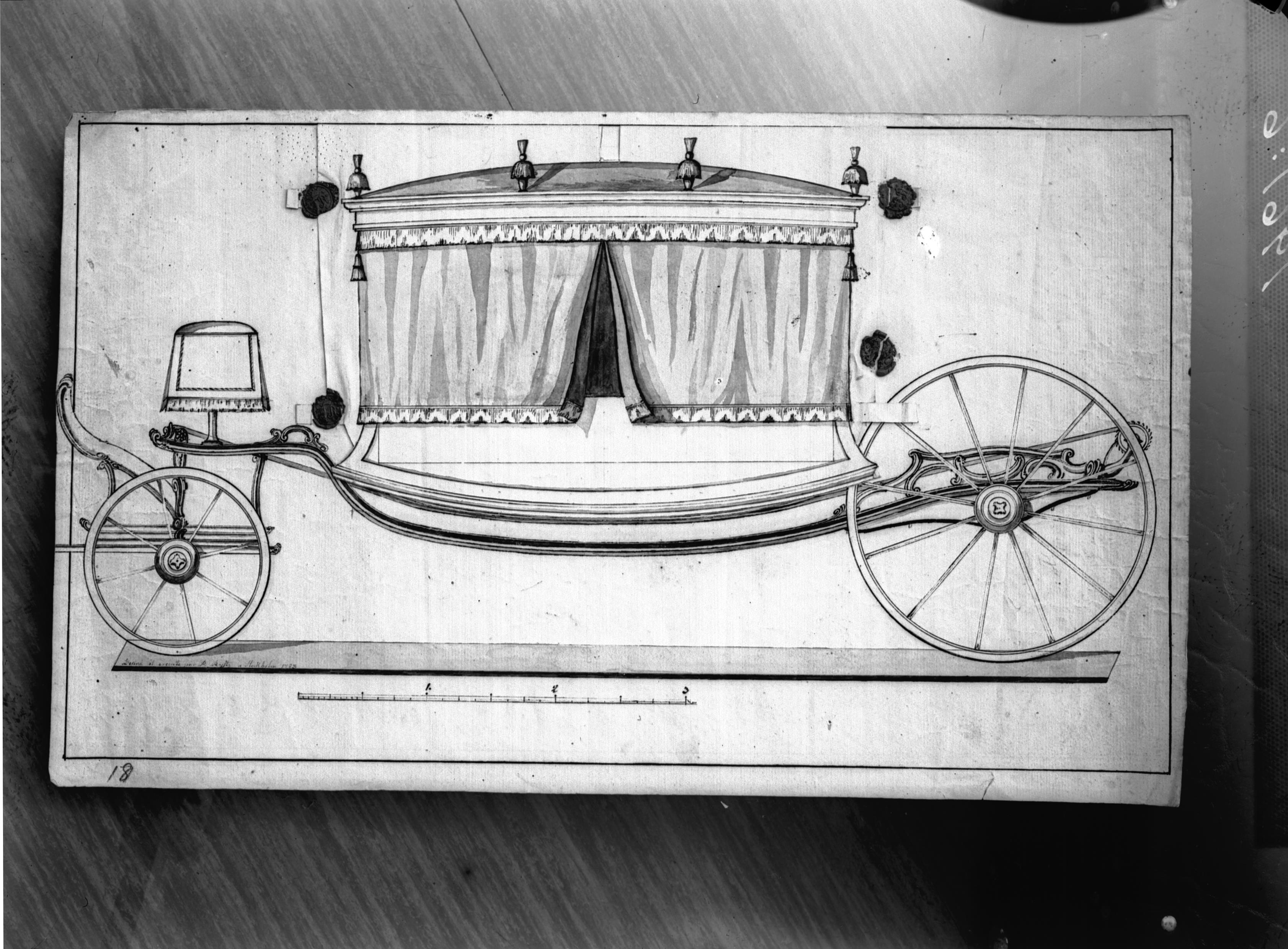 Ritning till likvagn, av vagnmakaren Pehr Rysth, 1783.