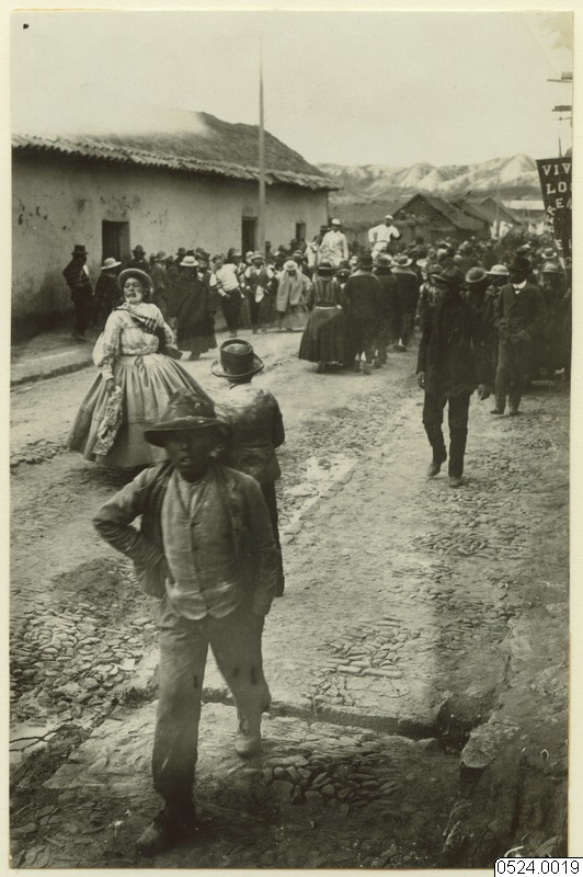 La reina, drottningen, dansande framför sin grupp. Hon är iförd massor av grannt färgade kjolar och vackert målad i ansiktet.