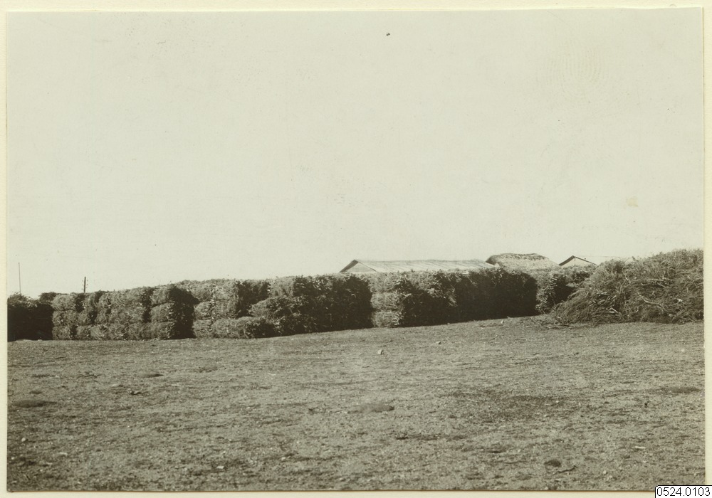 "Tola" upplag vid Calacoto´s järnvägsstation. Detta högslättens av uppryckta buskar bestående bränsle synes till höger i sitt naturliga tillstånd i en stor hög, till vänster däremot sammapressat och packat i balar för transport på järnvägen.