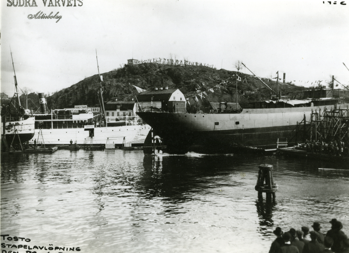 Södra varvet, Stockholm. S/S TOSTO av Haugesund på slipen före sjösättningen.