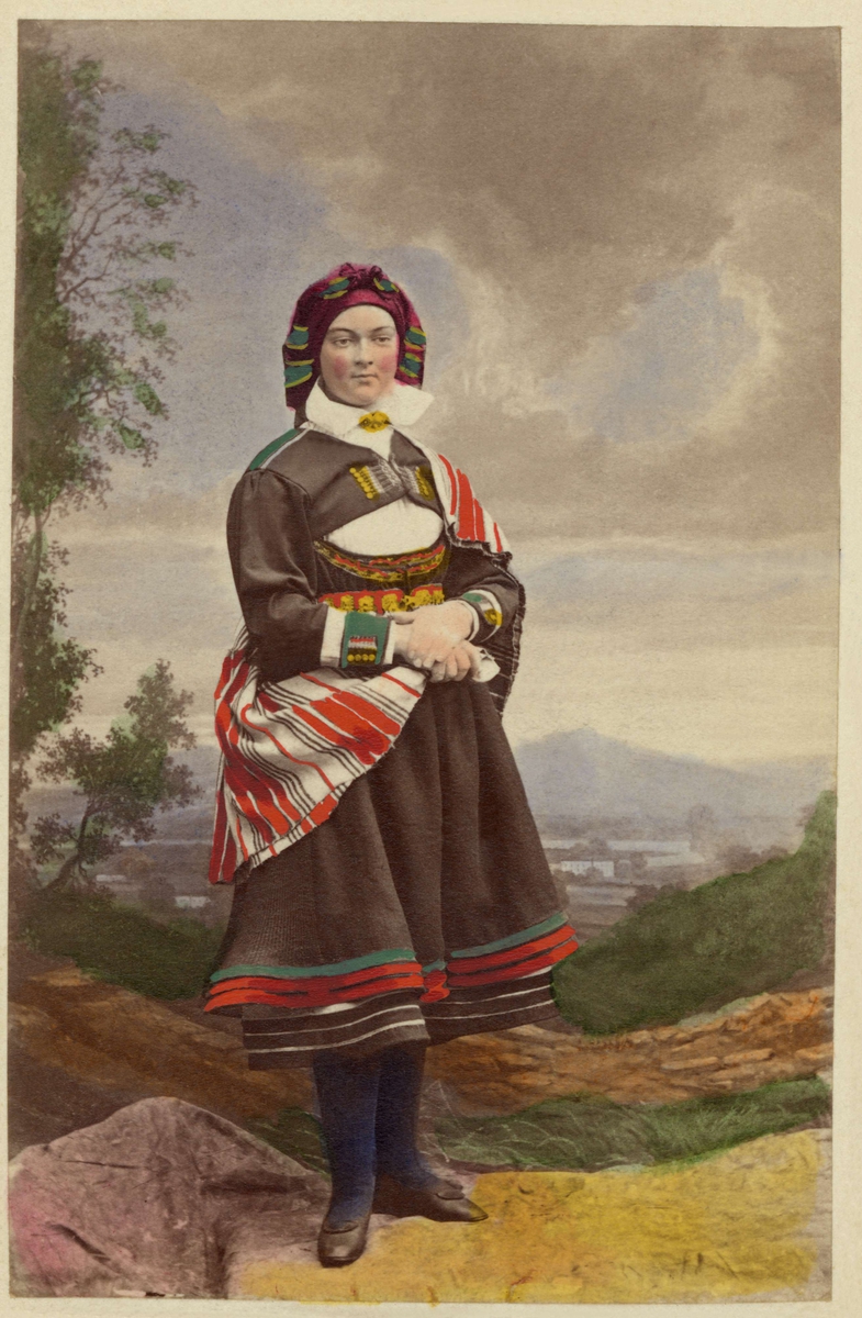 Sätersdalen Norge." Ett färglagt foto på en kvinna