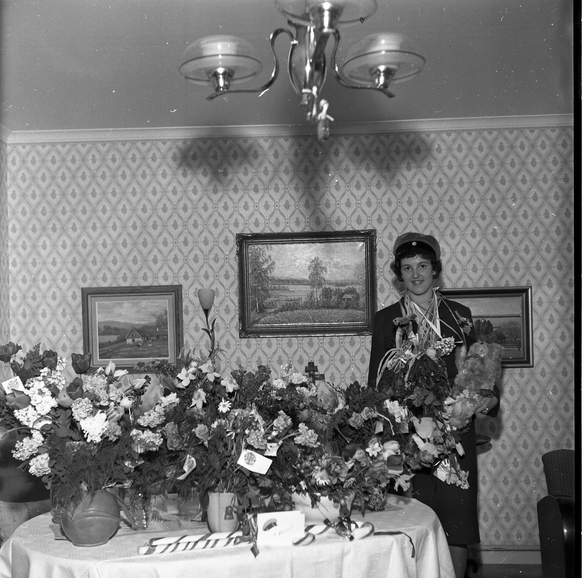 Porträtt av en ung kvinna som tagit realen. Hon står i hemmiljö med blommor och ballonger.