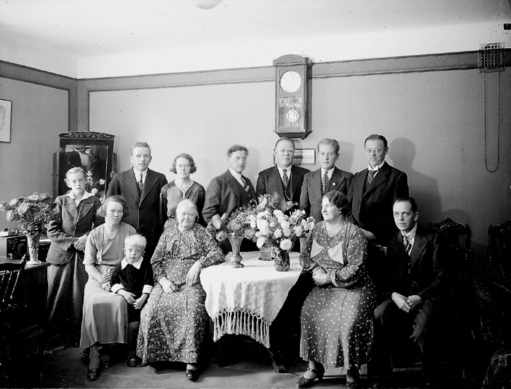 Rumsinteriör, släktgrupp 12 personer, födelsedag.