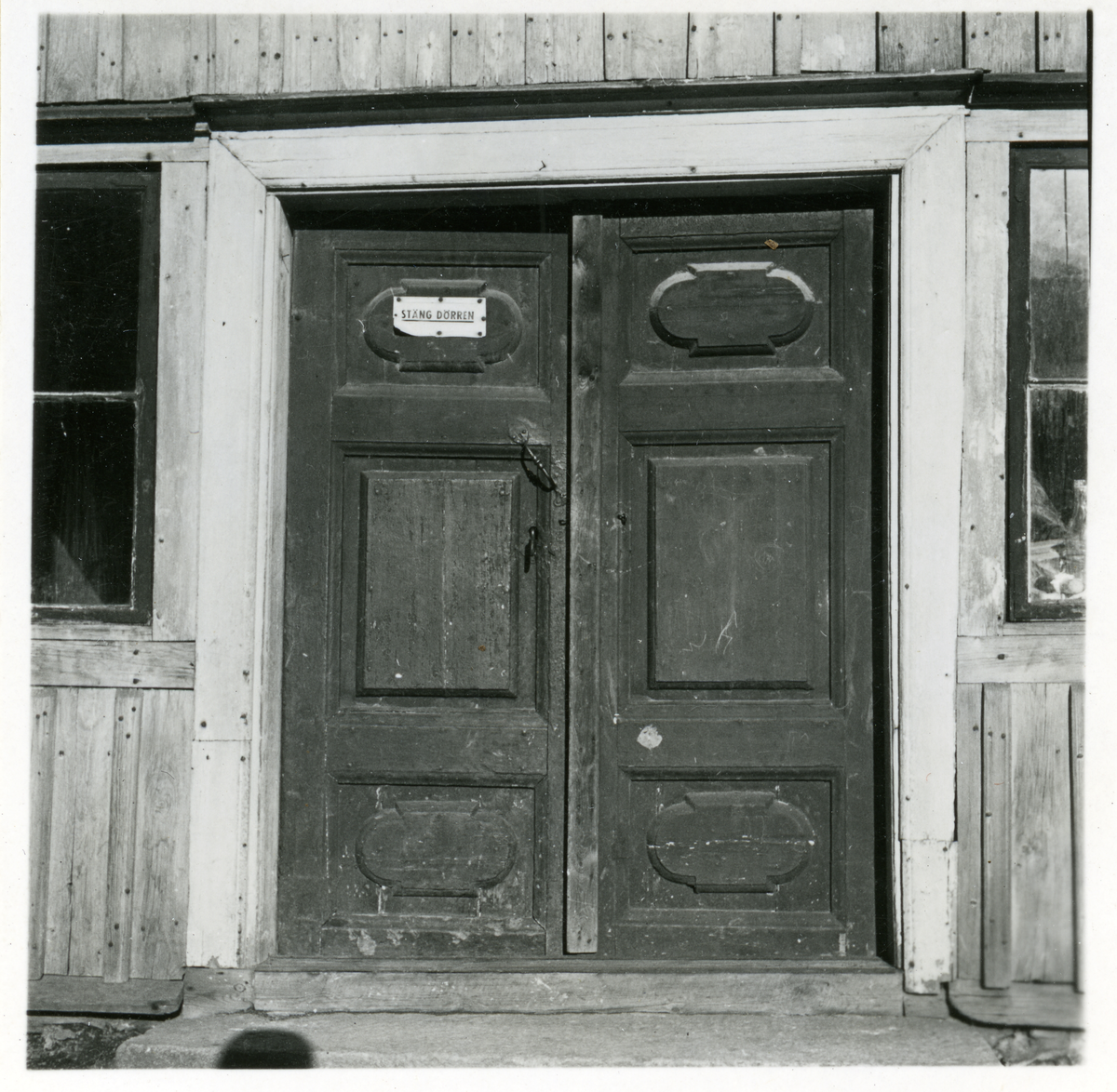 En dubbeldörr på byggnaden Hantverkargatan 1.