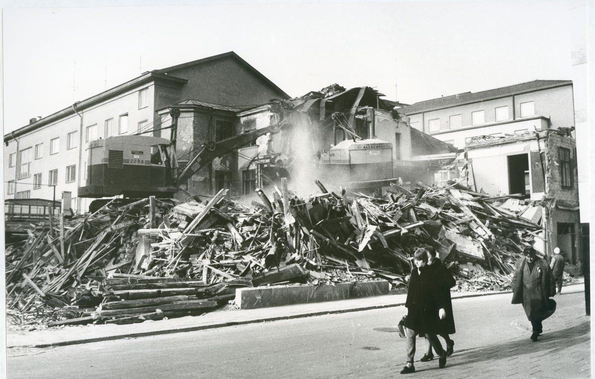 Rivningsarbete. Från Hantverkargatan, 1966.